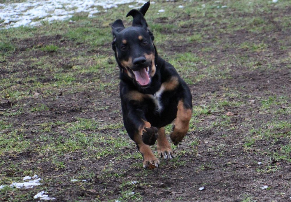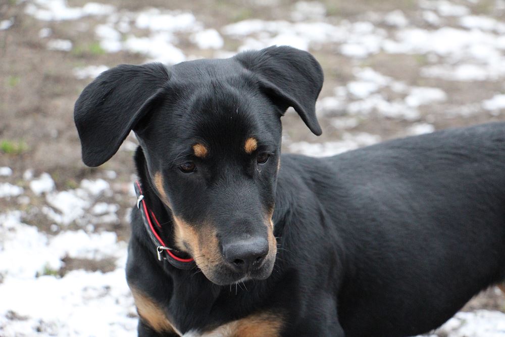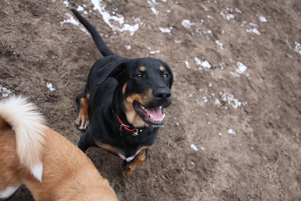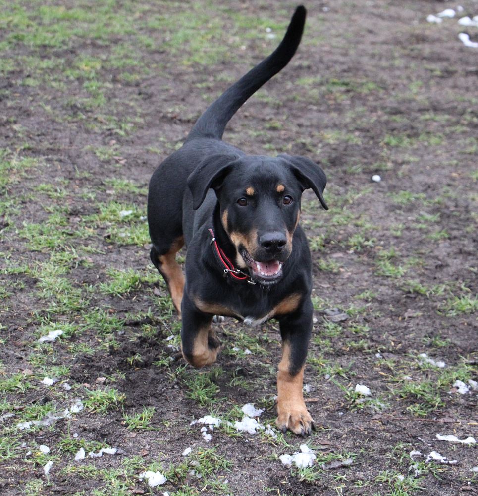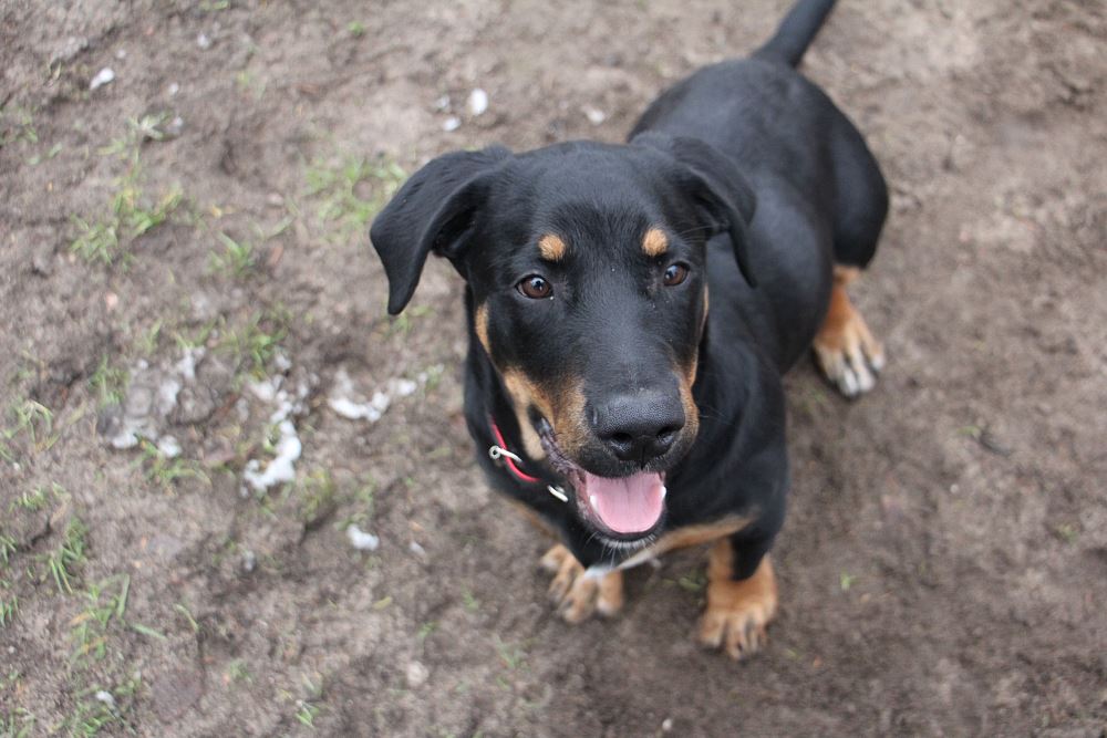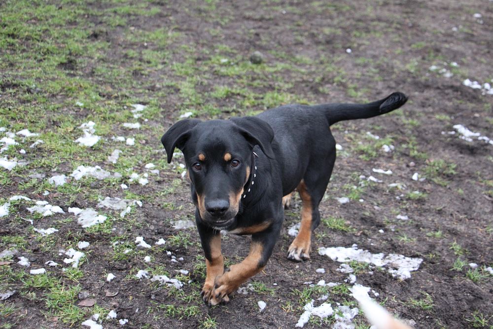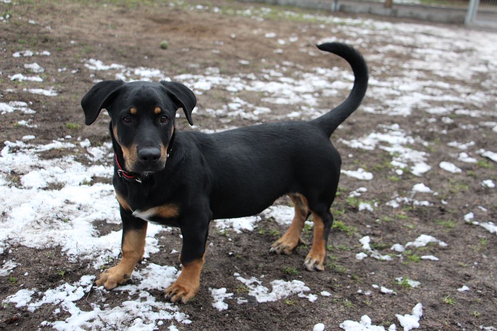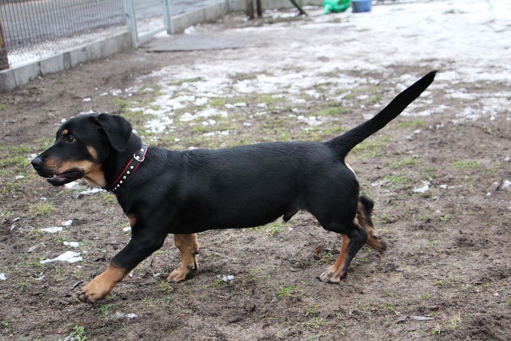 Pies przywieziony z interwencji TOZ. Gruby ma 6 miesięcy. Jest masywnym niskim kawalerem. Przez jego gabaryty jest mało aktywny. Odkrywa zabawę piłką, potrafi chodzić na smyczy, zgadza się z innymi psami. Gruby, to miły wyjątkowy psiak. Miał kontakt z dziećmi.