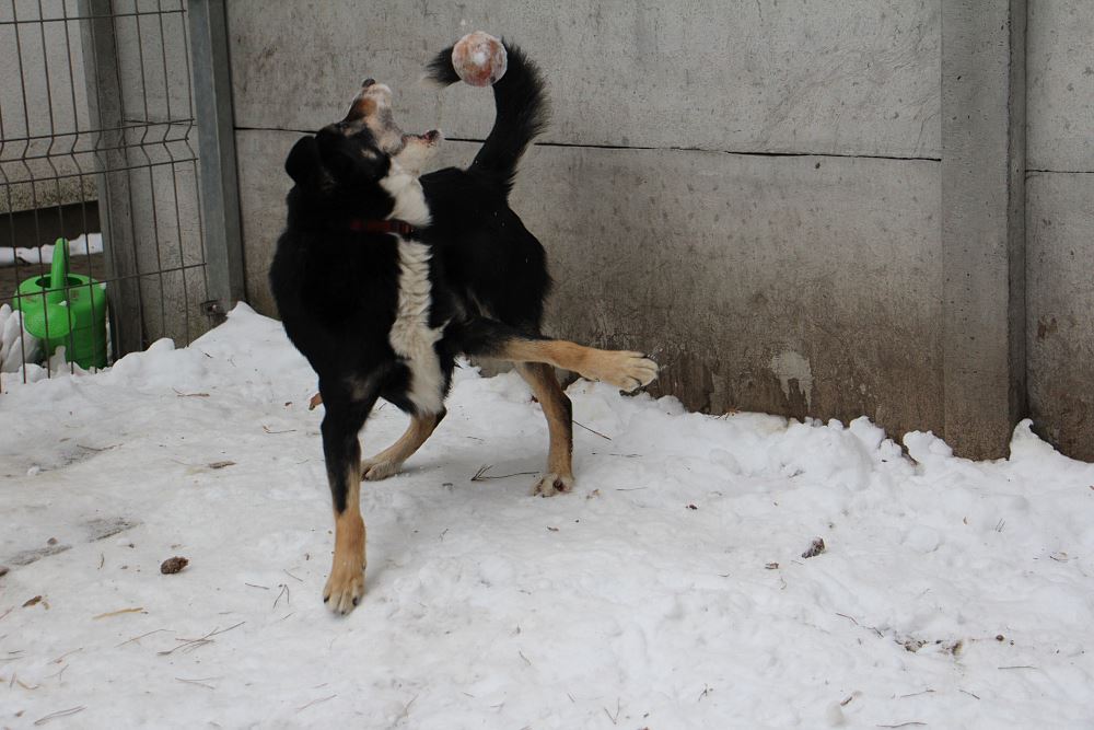 Grot przyjechał do schroniska 15 lutego 2021 r. z gminy Ryczywół. To młody, żywiołowy psiak. Bardzo lubi kontakt z człowiekiem pomimo tego, że wydaje się, że był często karcony. Grot uwielbia zabawę piłką, co widać na zdjęciu. W kontakcie z psami nie wykazuje agresji. Jednak swoją żywiołowością prowokuje, co może powodować konflikty między psami.