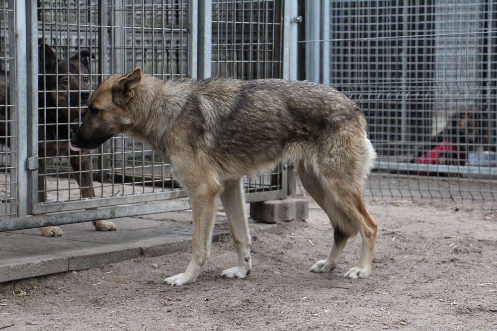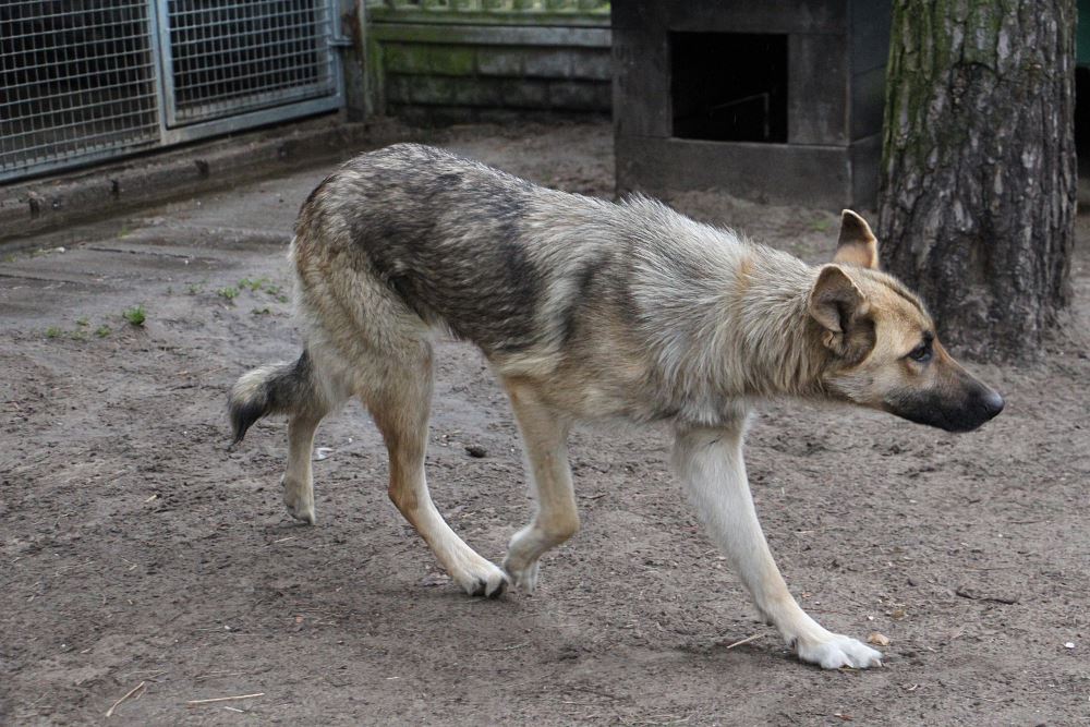 Szekla, suczka przywieziona 10 kwietnia 2021r. z Żernik, gmina Oborniki, blisko granicy z gminą Murowana Goślina. Szekla niedawno odchowała szczenięta. Szekla jest chudziutka, musi dojść do formy. Suczka ma ok. 2-3 lat, jest łagodna, przyjazna i uległa.