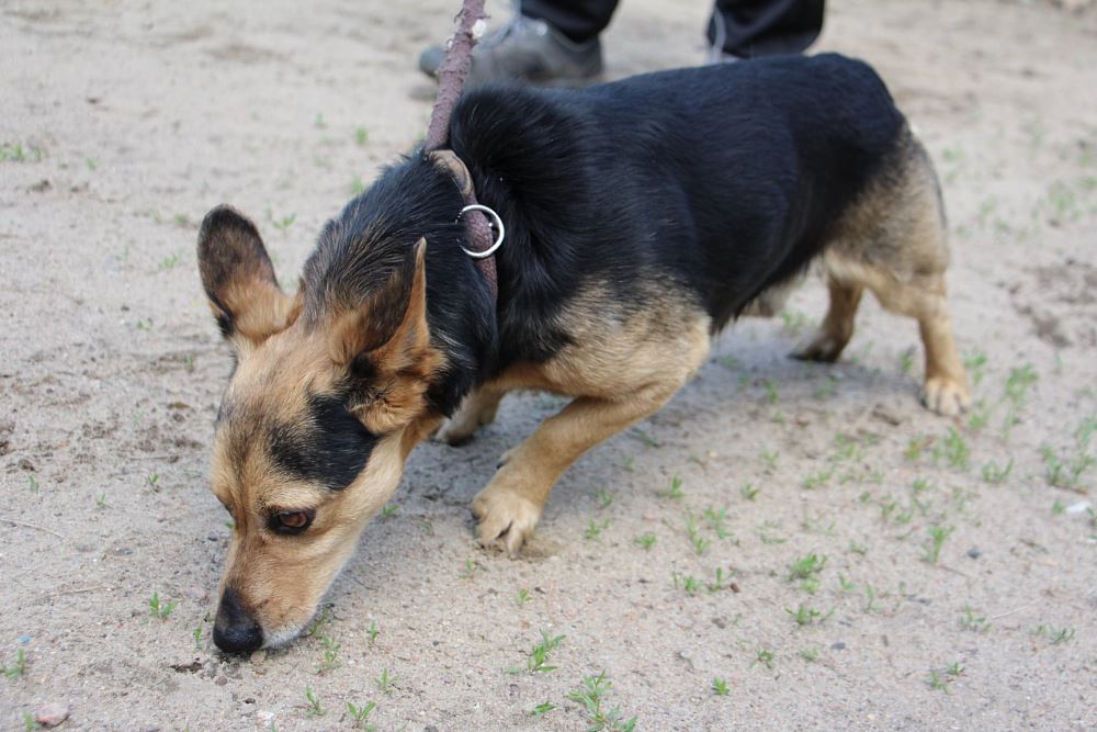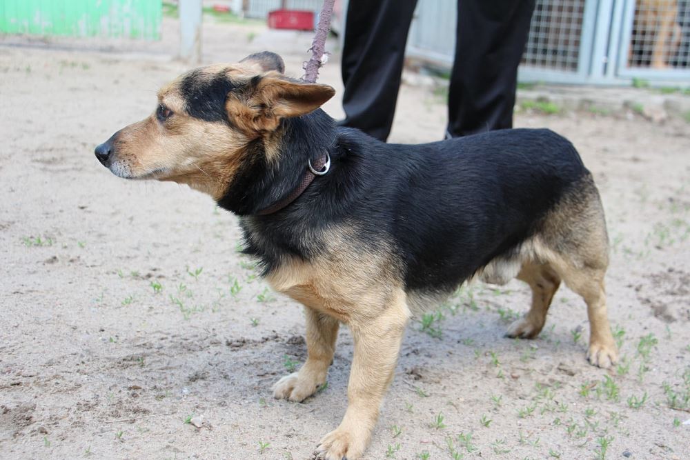 Pies przywieziony 17 maja 2021 r. z Jaracza, gmina Rogoźno. Ma ok. 7-8 lat. Ma charakterystyczny, krótki ogon. Jest bardzo skoczny i nieustannie szuka drogi ucieczki.