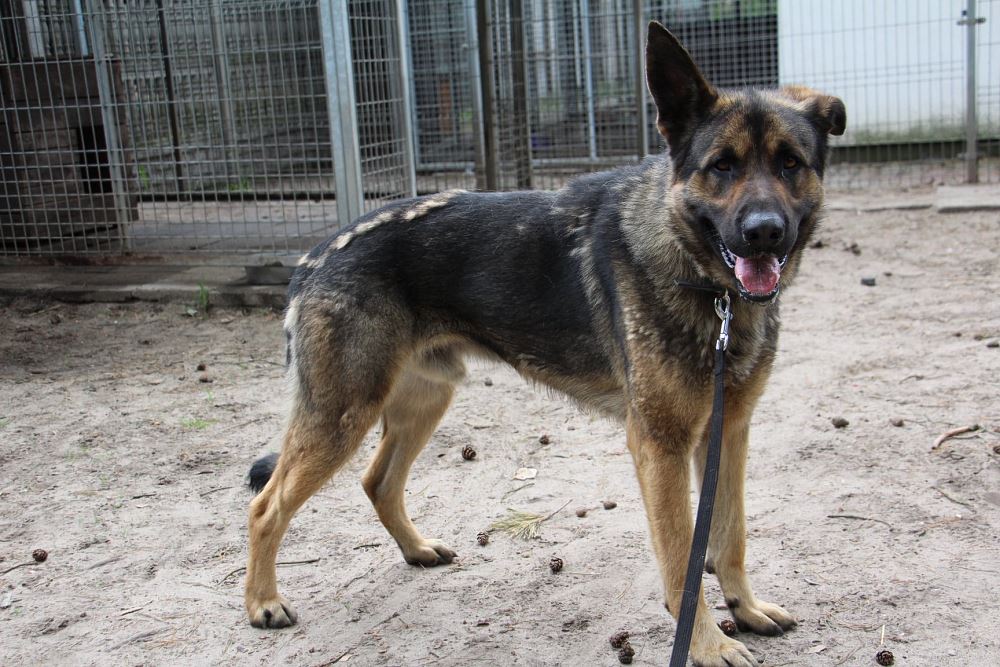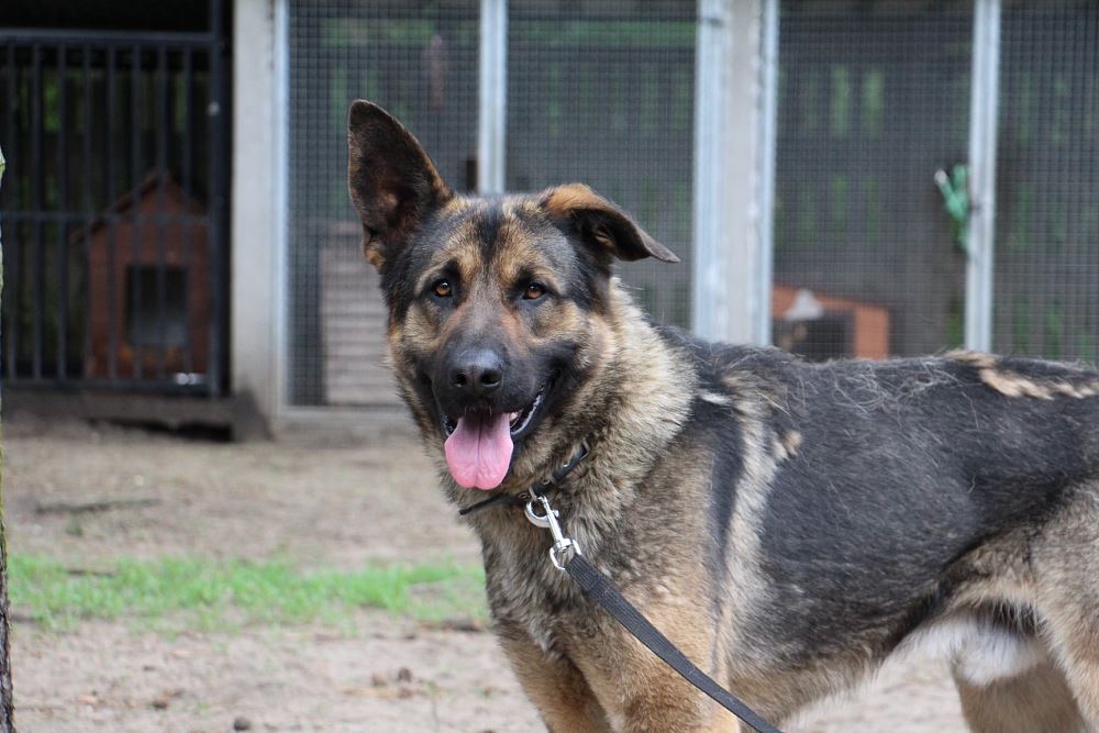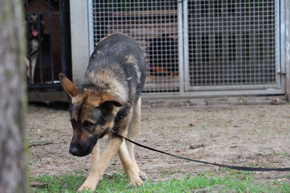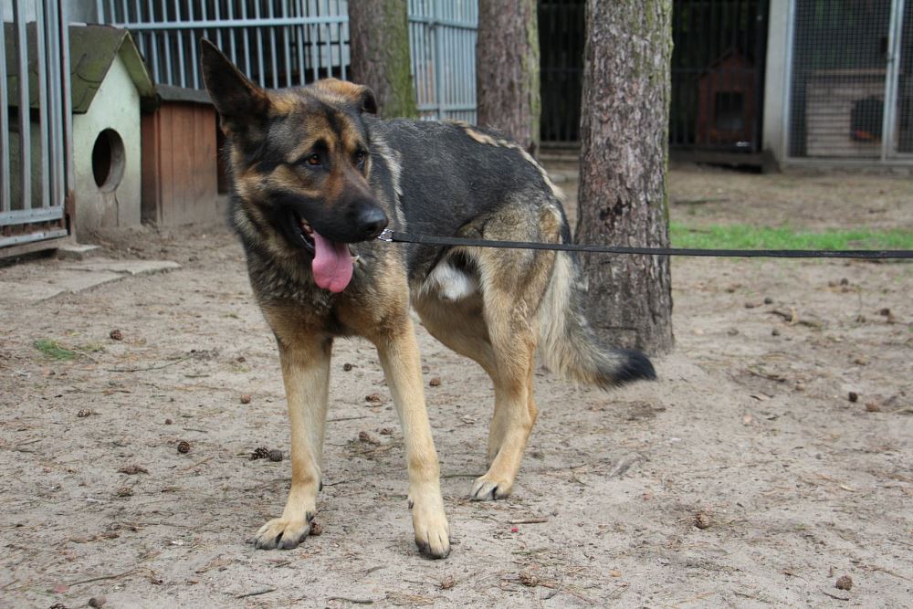 Pies przywieziony 18 maja z gminy Rogoźno odebrany interwencyjnie przez TOZ i SG. Ma około 3-4 lat. Potrafi chodzić na smyczy. Jest lekko zdystansowany wobec ludzi.