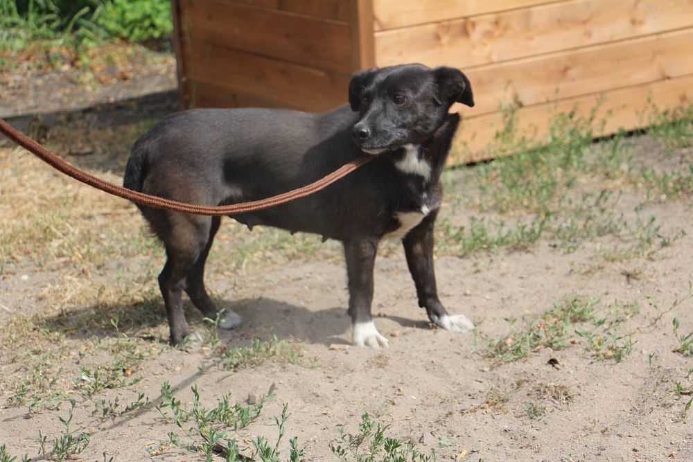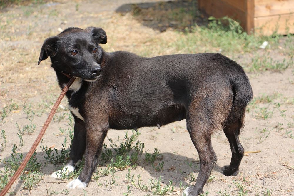 Suczka przywieziona 29 czerwca z gminy Kamieniec. Suczka przyjechała do nas po odchowaniu szczeniąt. Sunia ma około 3-4 lat, nie potrafi chodzić na smyczy.