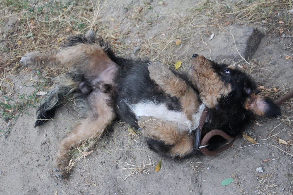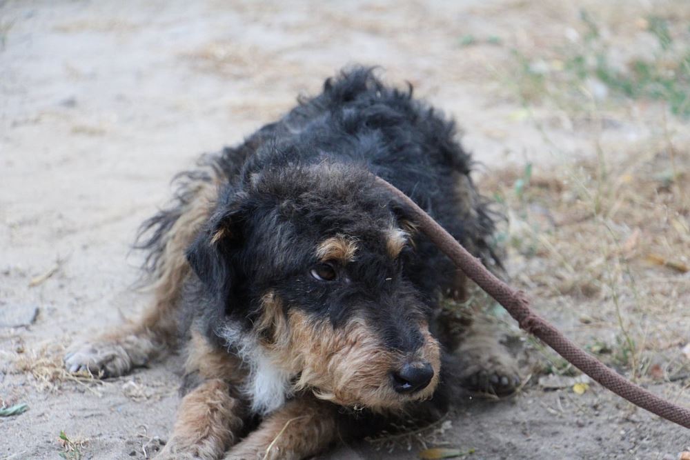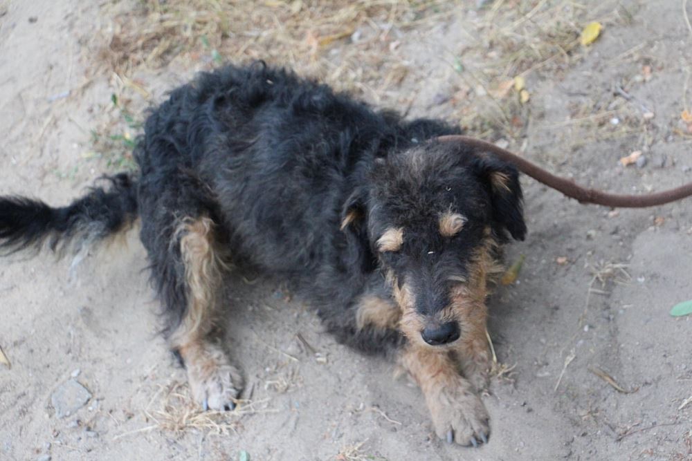Pies przywieziony 5 lipca 2021 r. z gminy Ryczywół znaleziony w polu pomiędzy Gorzewkiem a Wiardunkami wraz z Felą, Fioną i Franią. Ma około 3 lat, nie posiada czipa, nie zna smyczy, jest bardzo zaniedbany.