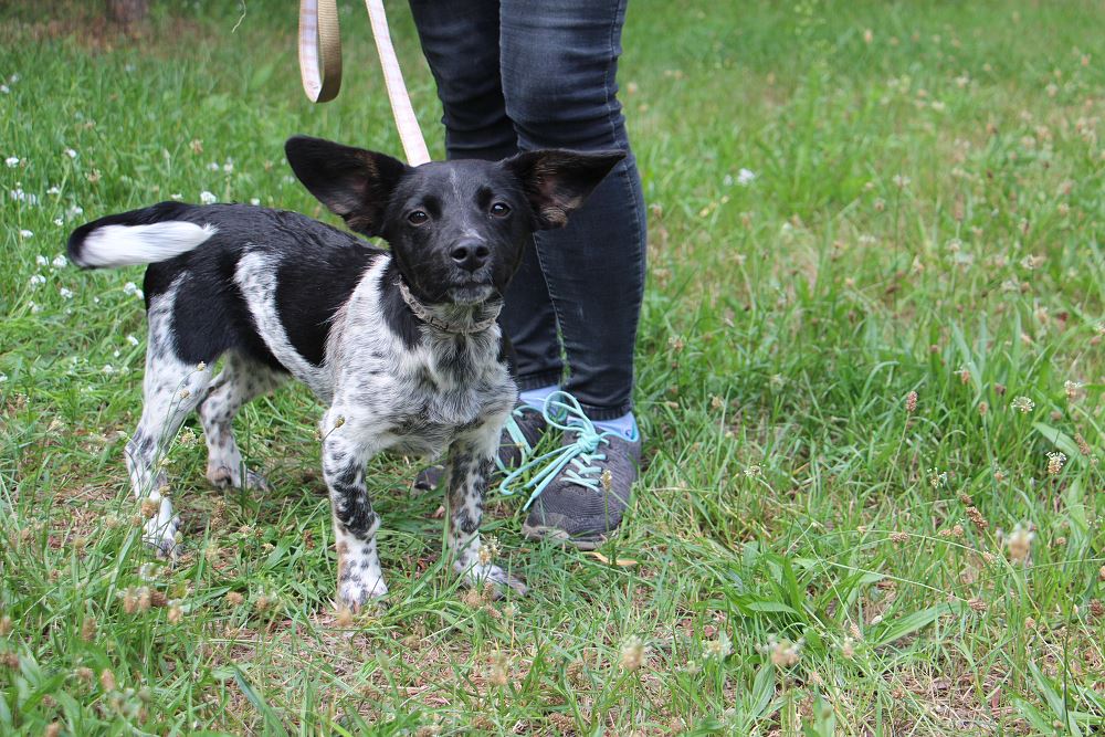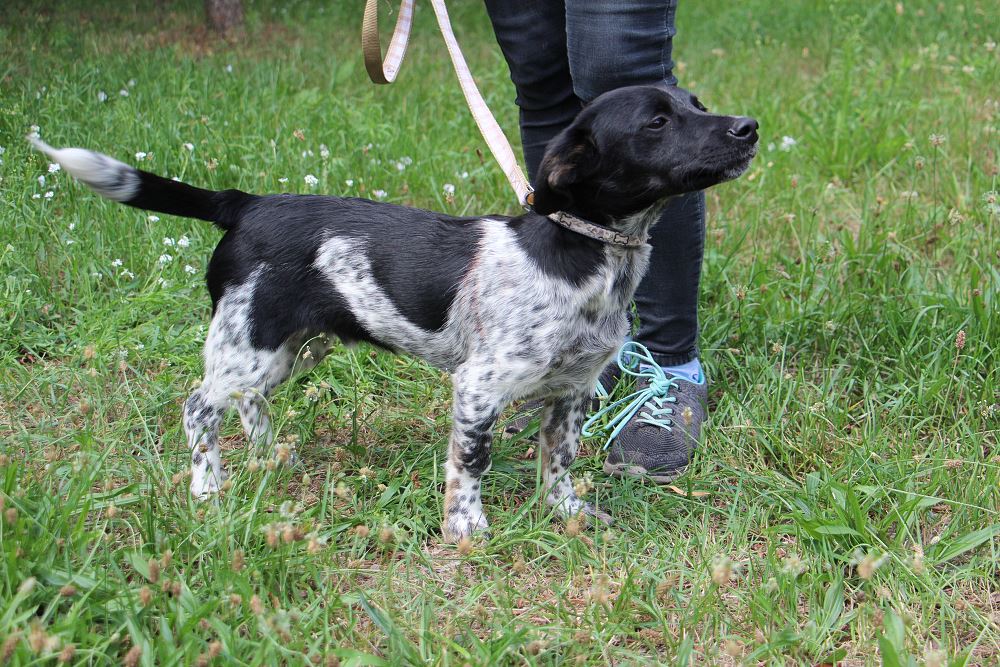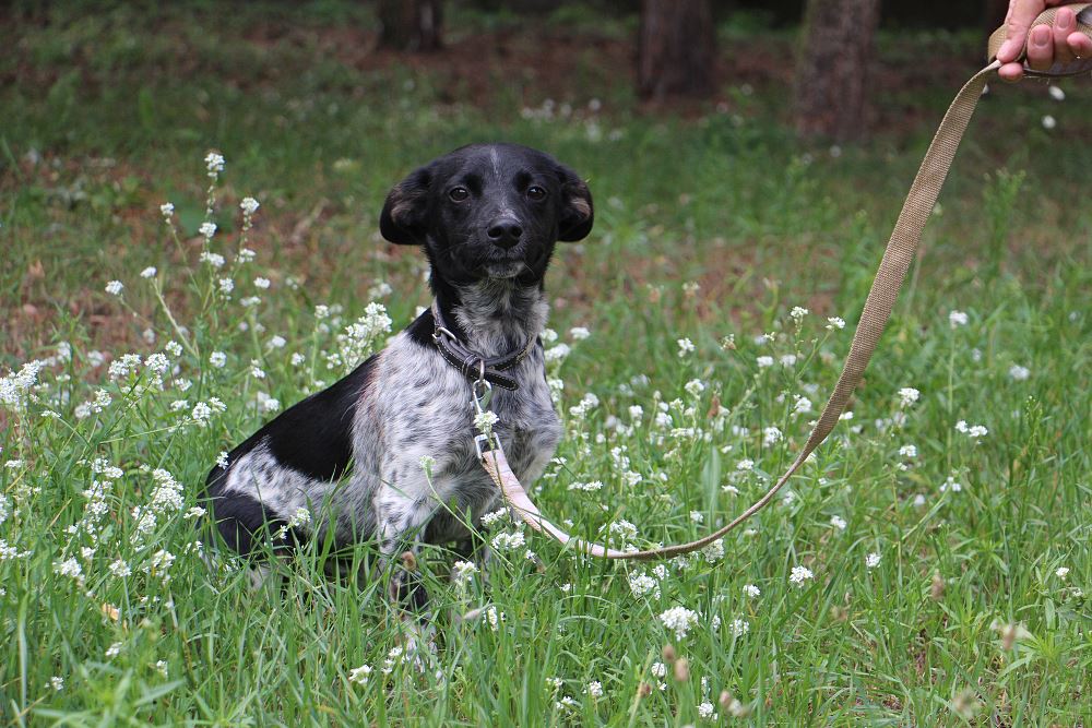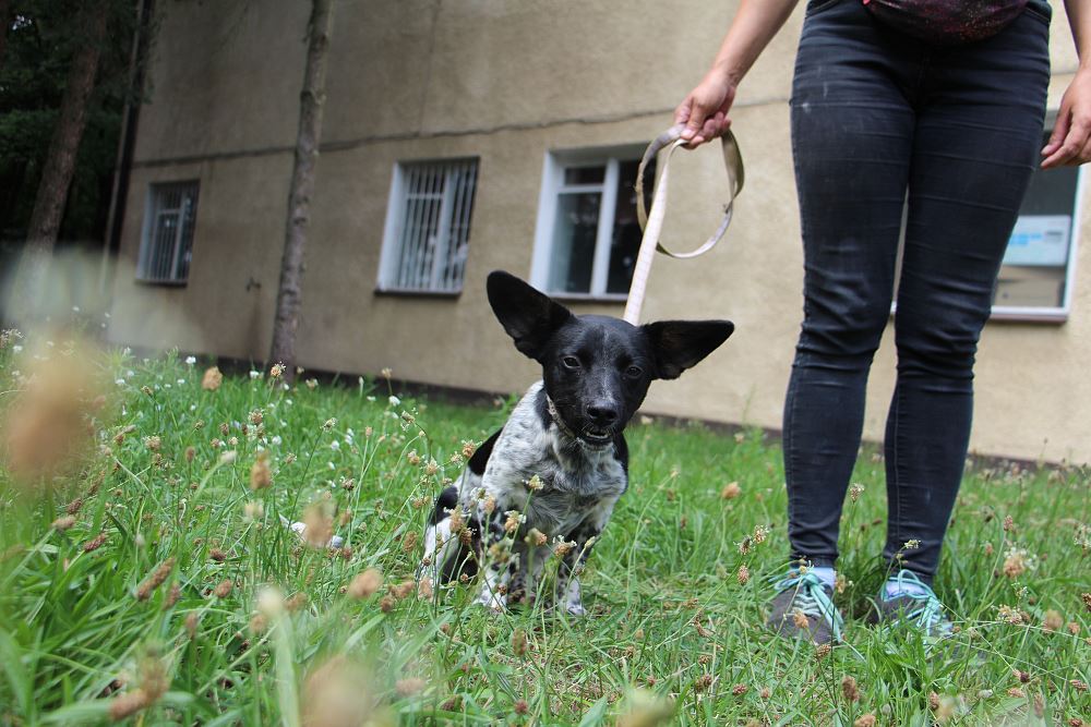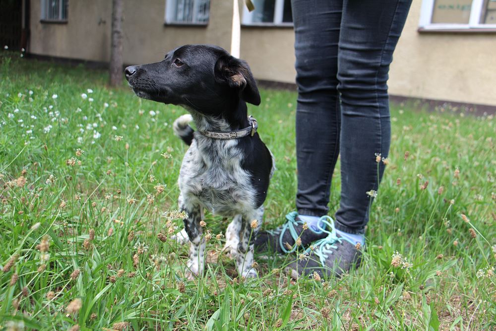 Pies przywieziony 22 lipca 2021 r. z Rogoźna. Ma blade dziąsła, jest chudy. Dropik ma zaledwie 10 miesięcy. Potrafi chodzić na smyczy.
