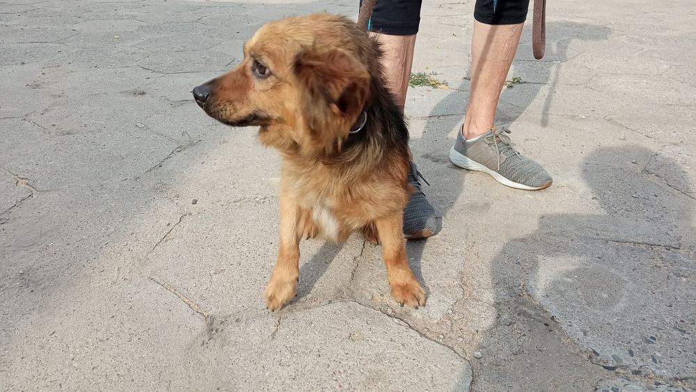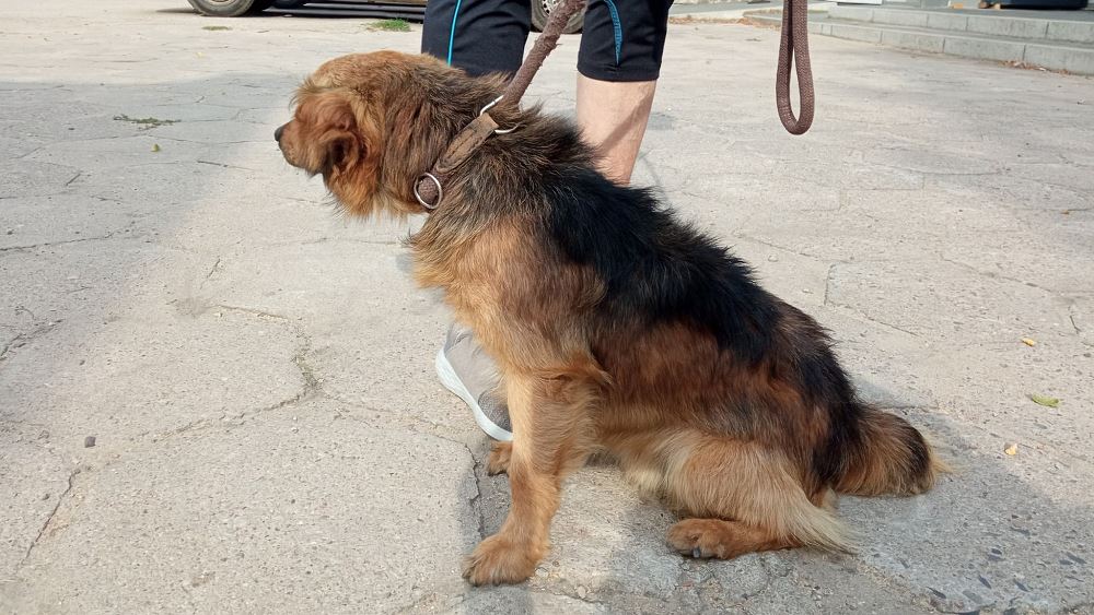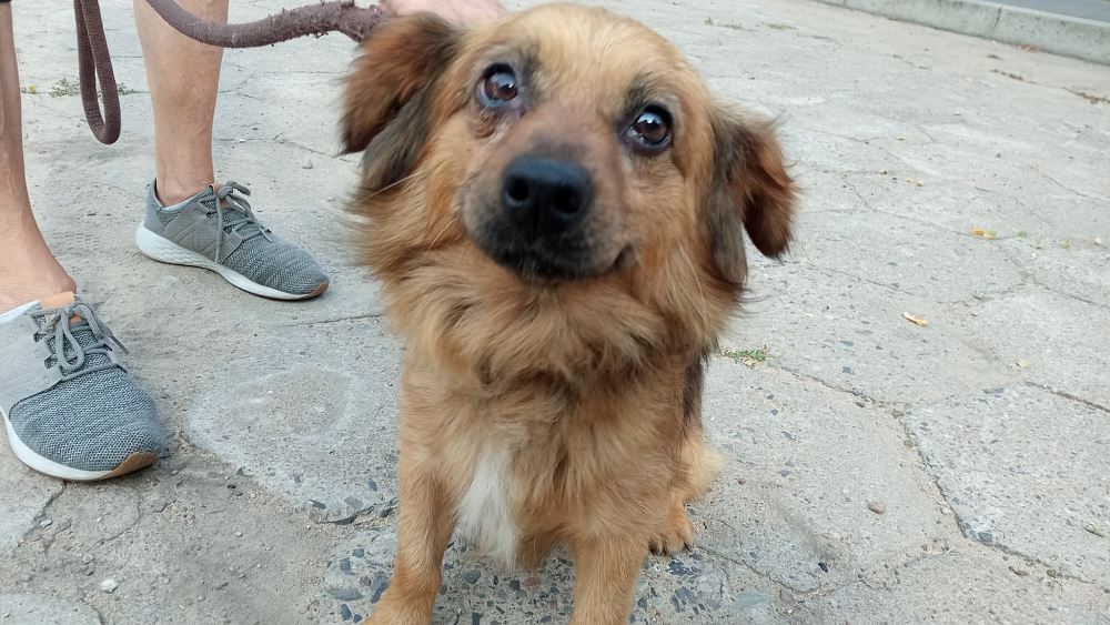 Pies trafił do schroniska 24 lipca 2021 r. Złapany na drodze do Rudek. Hopek ma ok. 3-4 lat. Ma charakterystyczny krótki ogon.