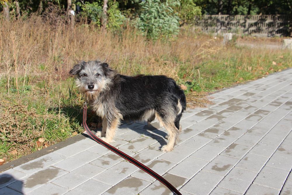 Prot przyjechał do schroniska w lipcu 2021 r. z gminy Rogoźno. Był bardzo nieufny. Włożona praca i cierpliwość przyniosły efekt. Prot jest coraz śmielszy. Uwielbia głaskanie, szczególnie po brzuszku. Dzielnie uczy się chodzenia na smyczy. Prot ma ok. 4 lat.