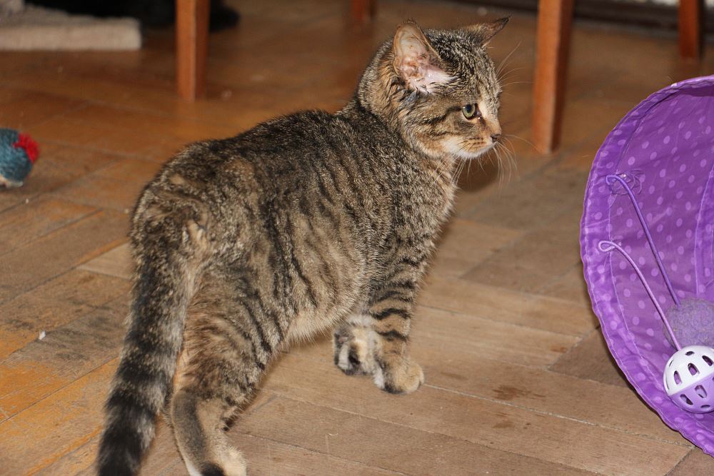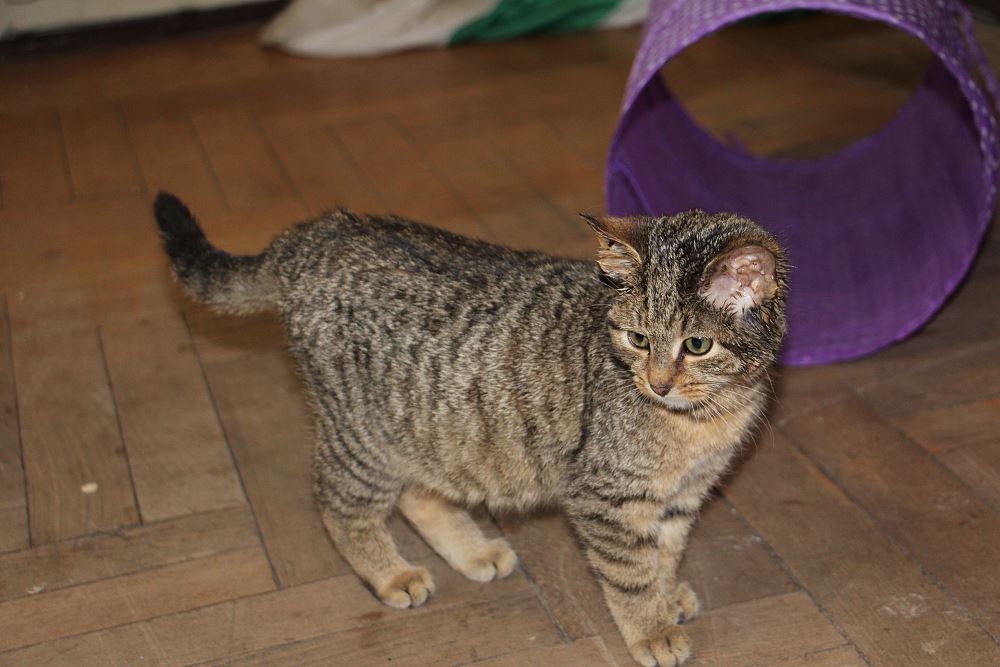 Kocurek w wieku 2-3 miesiące. Bardzo bystry, ciekawski kociak. Sprawdza każdego, kto wchodzi do kociego pomieszczenia. Profesorek jest w trakcie leczenia uszu. Wkrótce będzie szczepiony i zacznie rozglądać się za domem.
