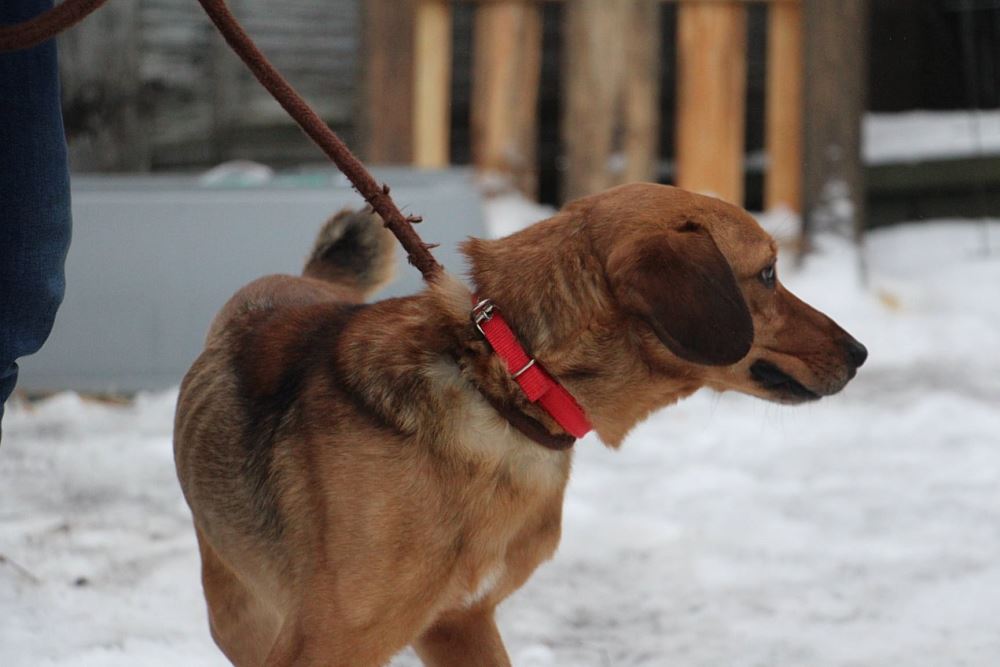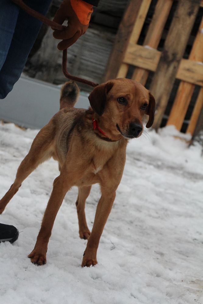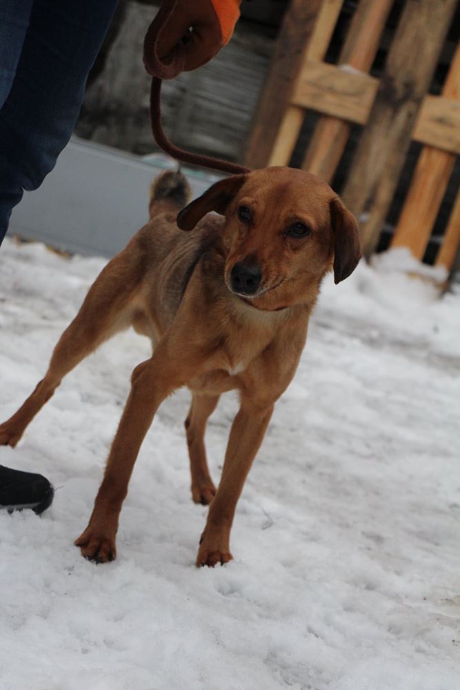 Pies, przywieziony 30 grudnia z gminy Grodzisk Wielkopolski. Jest psem około 2 letnim. Chłopak błąkał się po wsi od pewnego czasu. Jest chudy. Apetyt ma przeogromny. Na początku bardzo się bał, ale już na drugi, gdy się najadł i wyspał, okazał się wesołym kawalerem. Uwielbia bieganie.