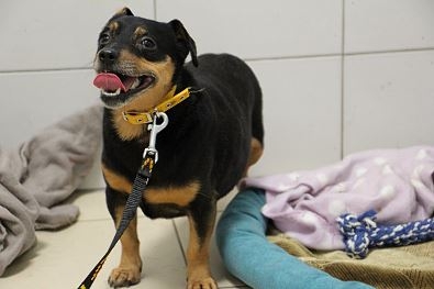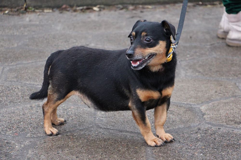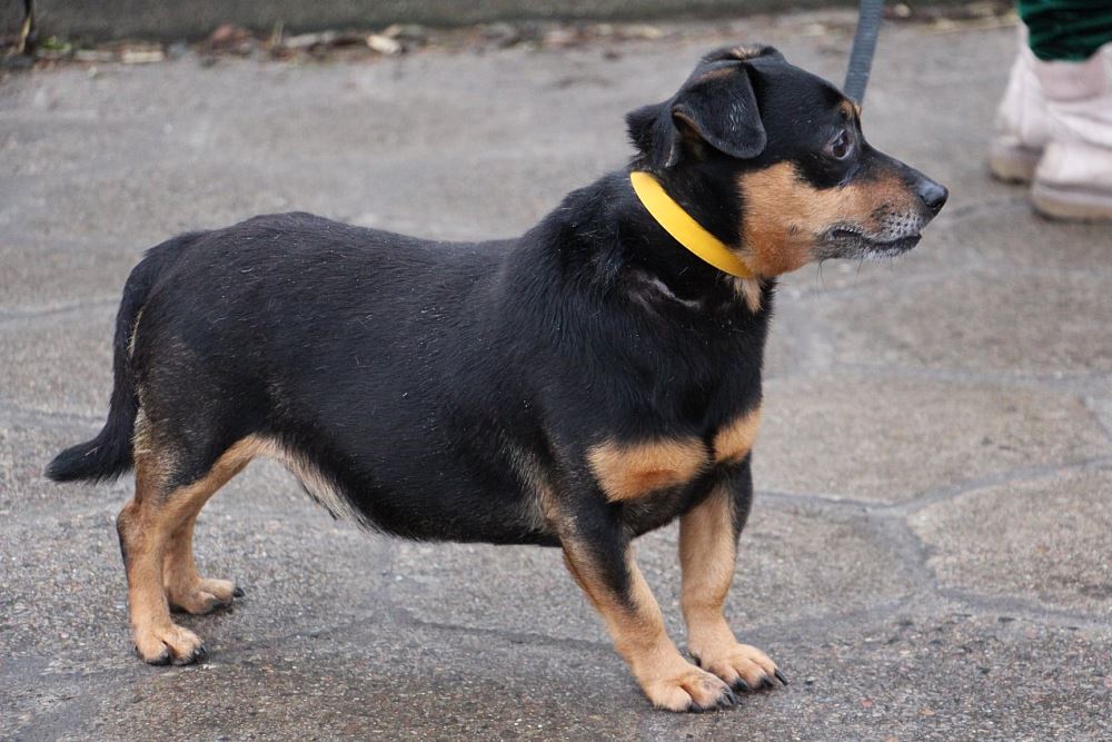 Pies przywieziony do schroniska 17 czerwca 2021 r. z Parkowa, gmina Rogoźno. Był zdziczały i nieufny - przeszedł zabieg kastracji i sam w pomieszczeniu był niechętny do kontaktu z człowiekiem ale przeniesiony został do swojej rodziny- Tuptusia i tam naśladując go powoli uczy się życia z ludźmi. Tutuś chodzi na spacery. Ze swoją opiekunką potrafi bawic się piłką. Jest nieufny do obcych. Jest oceniony na dzień przybycia 4-5 lat