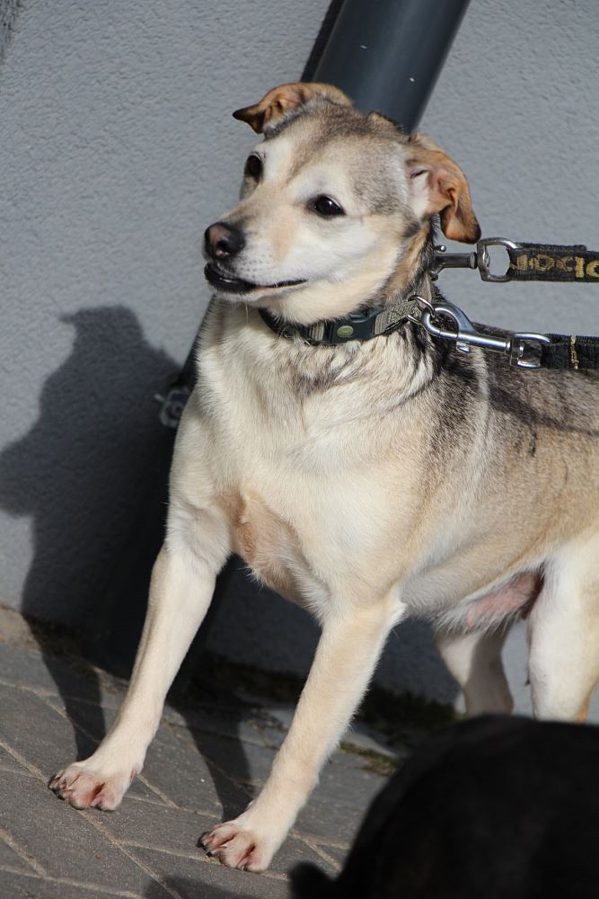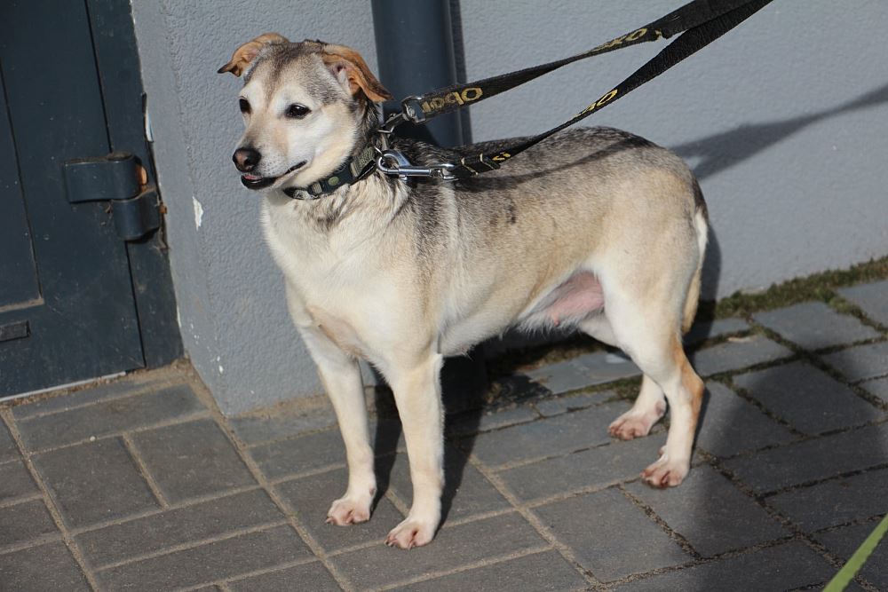 Suczka, przywieziona 17 czerwca 2021 z gminy Rogoźno- była zdziczałą suczką. Przyjechała z całym stadem psów. Została wysterylizowana, zaszczepiona, jest mała. Obecnie kocha głaskanie po brzuszku, boi się jeszcze chodzić na spacery ale już się otwiera co raz bardziej na ludzi.