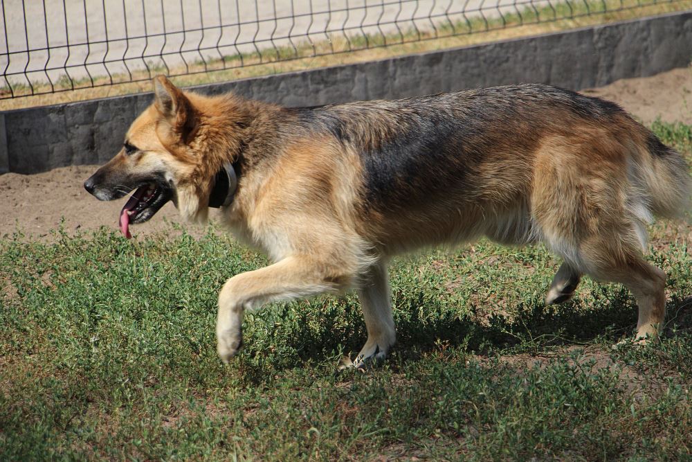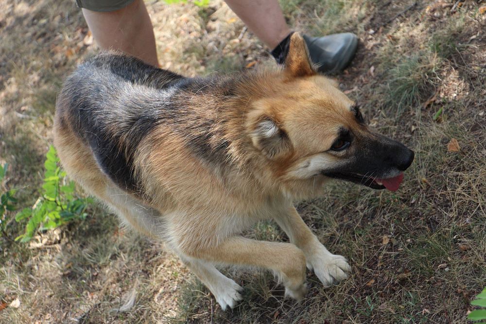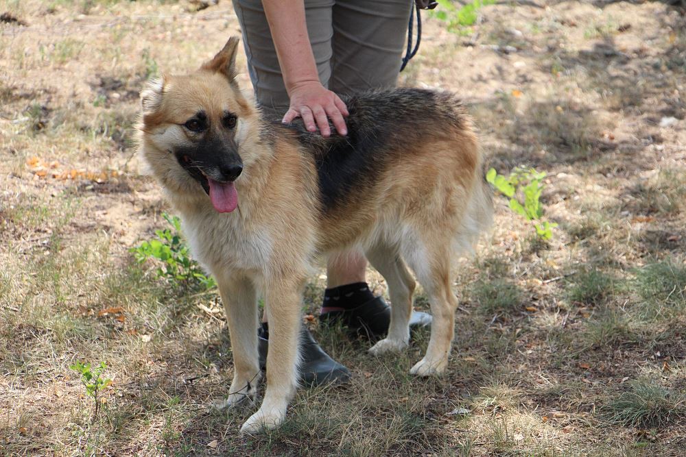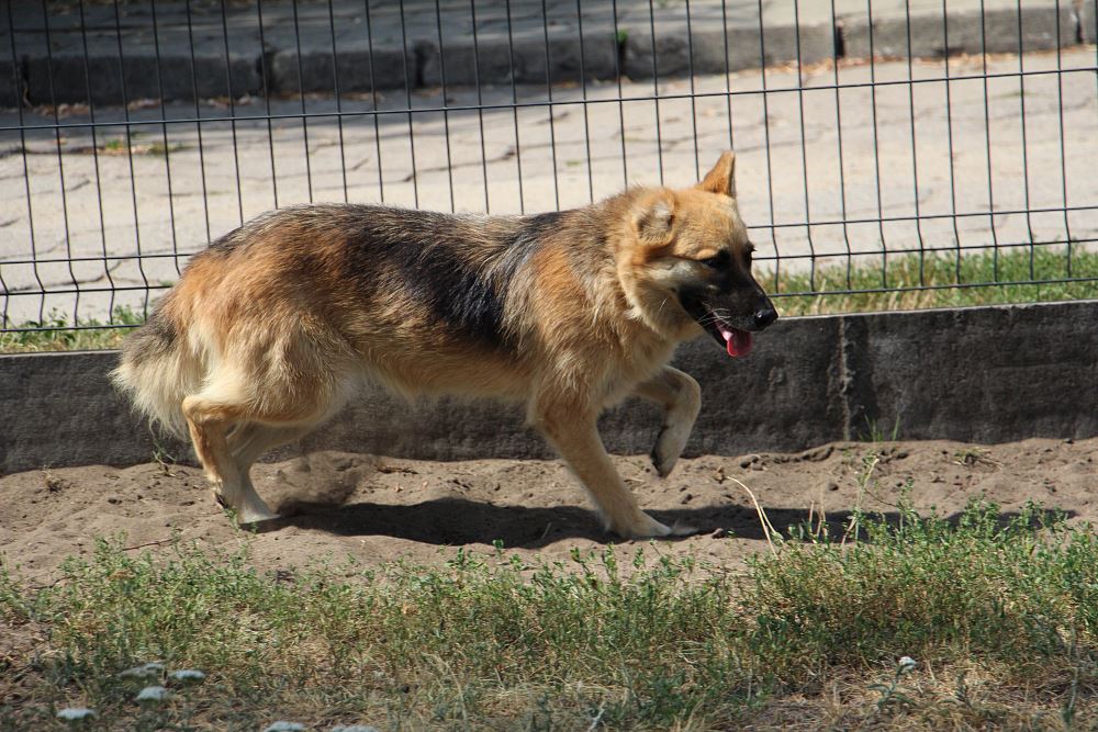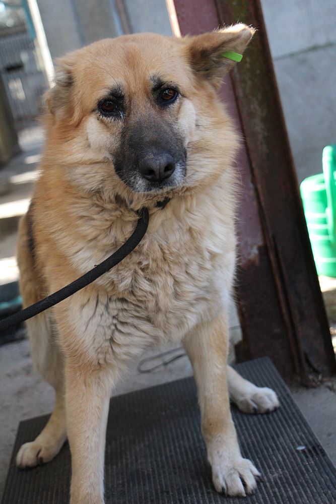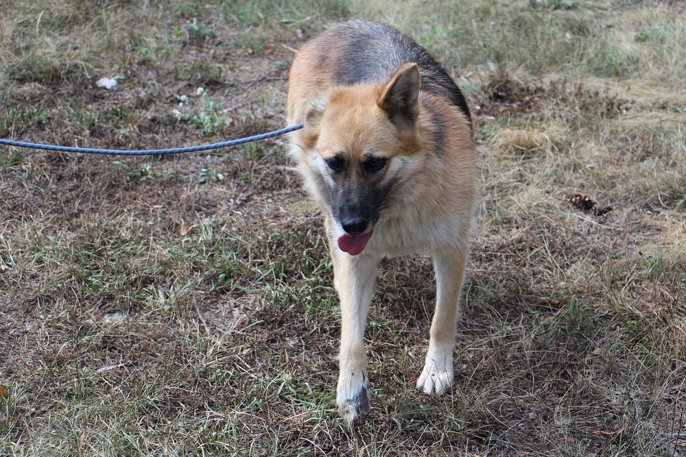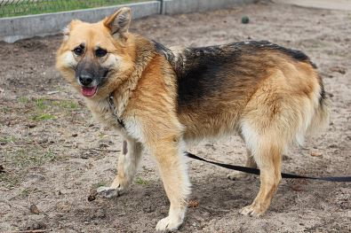 Katja przyjechała 19 marca 2022 r. z kijowskiego schroniska na Ukrainie. Sunia miała ok. 3 -4 lat. Nie ma prawego ucha, lewe jest lekko ścięte, nie ma trzech palców prawej przedniej łapy, i widoczną łysą bliznę, ma skrócony ogon. Potrafi chodzić na smyczy, lubi głaskanie i kontakt z człowiekiem. Najpewniej czuje się na swoim wybiegu, gdzie biega z innymi psami. Waży ok. 24 kg.
