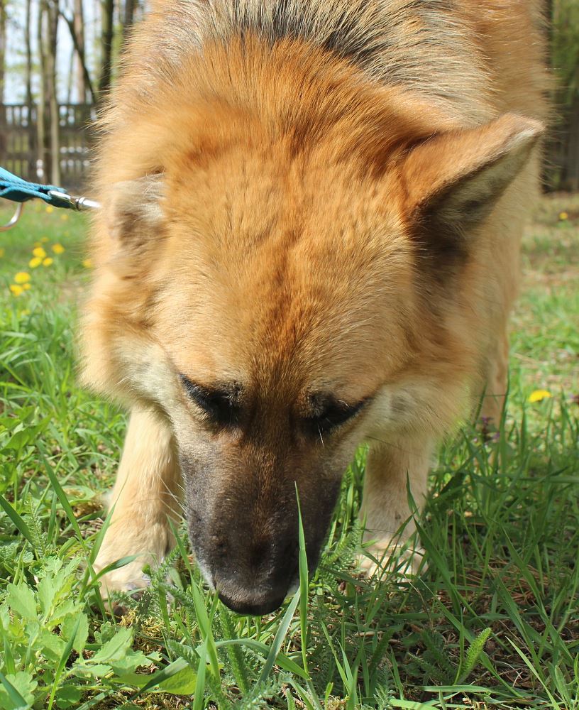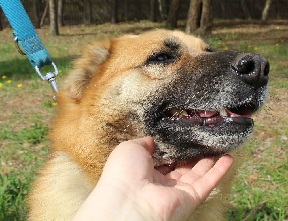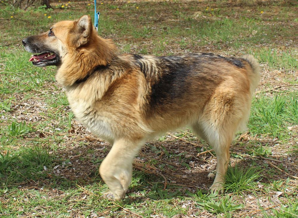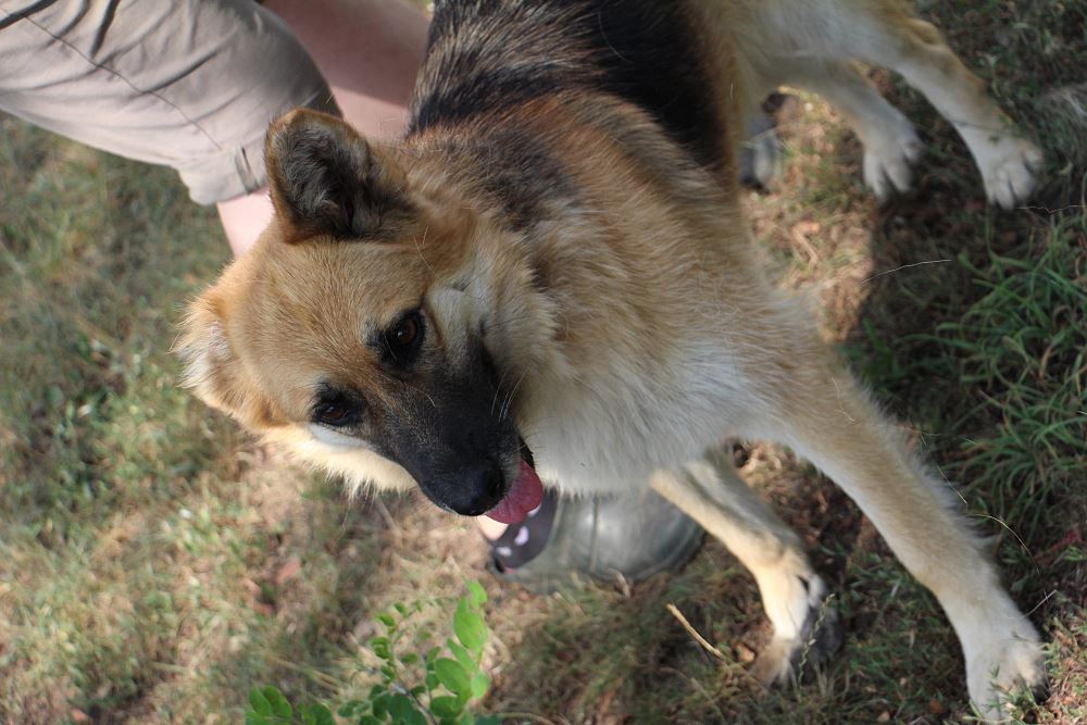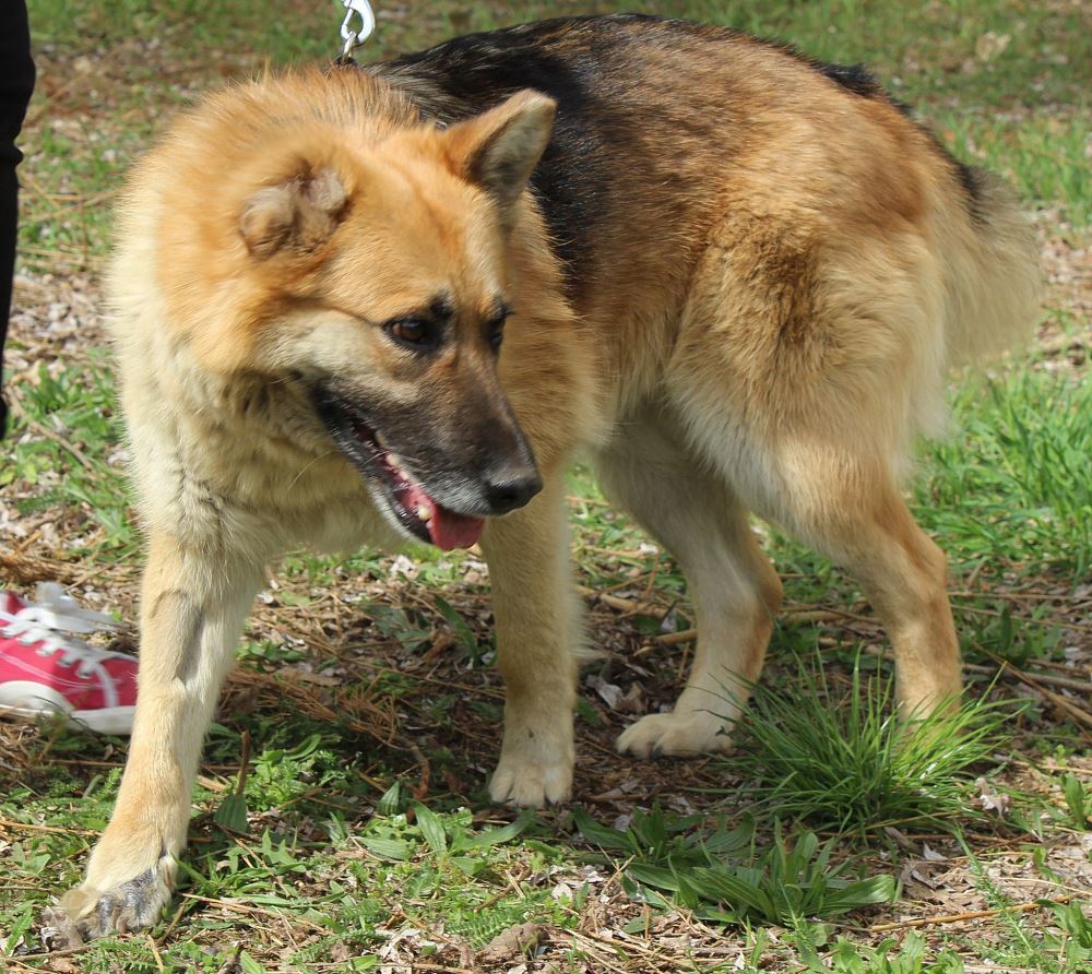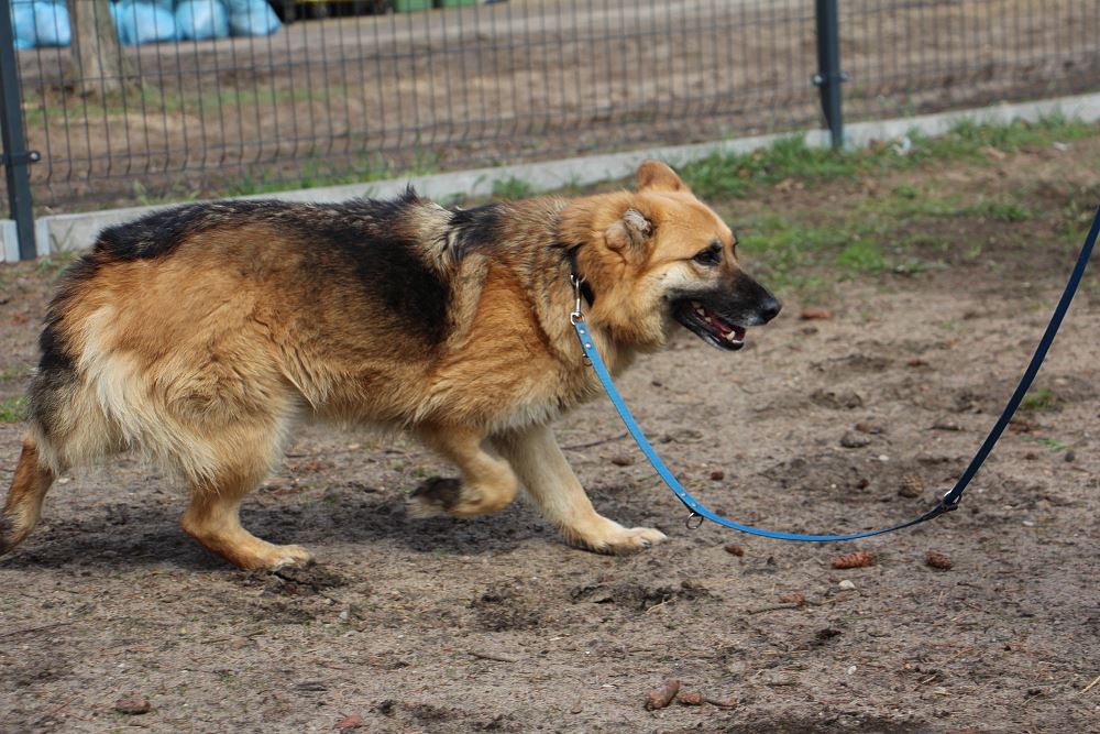 Katja przyjechała 19 marca 2022 r. z kijowskiego schroniska na Ukrainie. Sunia miała ok. 3 -4 lat. Nie ma prawego ucha, lewe jest lekko ścięte, nie ma trzech palców prawej przedniej łapy, i widoczną łysą bliznę, ma skrócony ogon. Potrafi chodzić na smyczy, lubi głaskanie i kontakt z człowiekiem. Najpewniej czuje się na swoim wybiegu, gdzie biega z innymi psami. Waży ok. 24 kg.