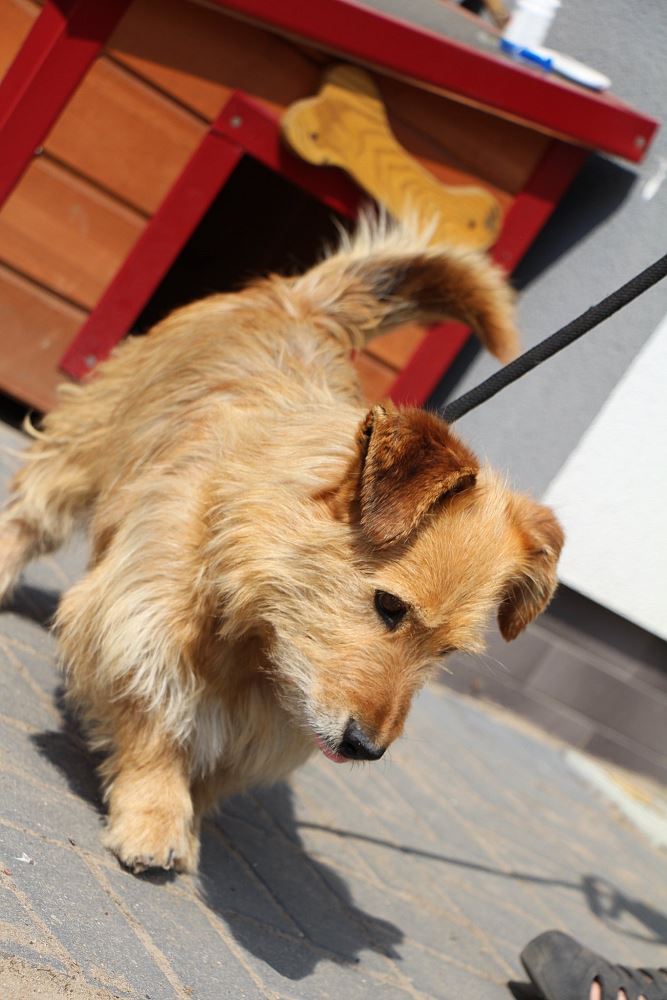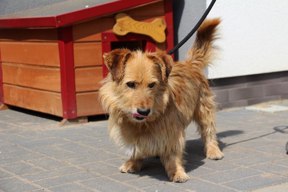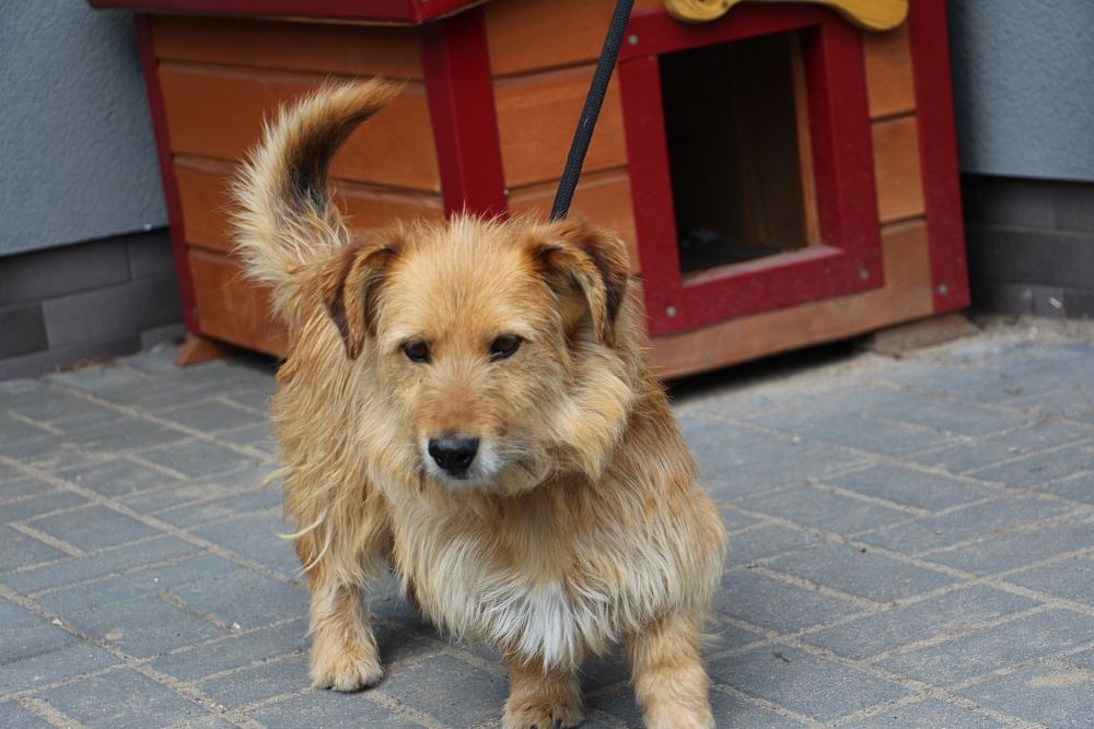 Pies przywieziony z Sarbi w gminie Czarnków 10 maja 2022 r. Psa nikt nie odbierze. Był psem podwórkowym utrzymywanym na uwięzi. Zna psa ze swojego podwórka Łatusia. Ma około 10 lat waży niecałe 10 kg. Powoli będziemy go szykować do adopcji.