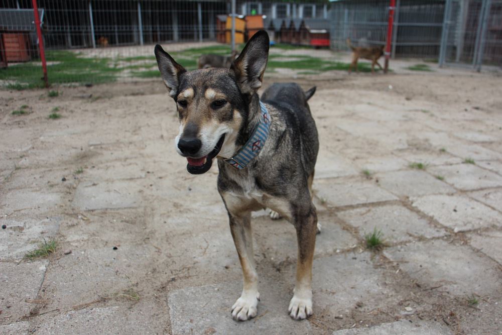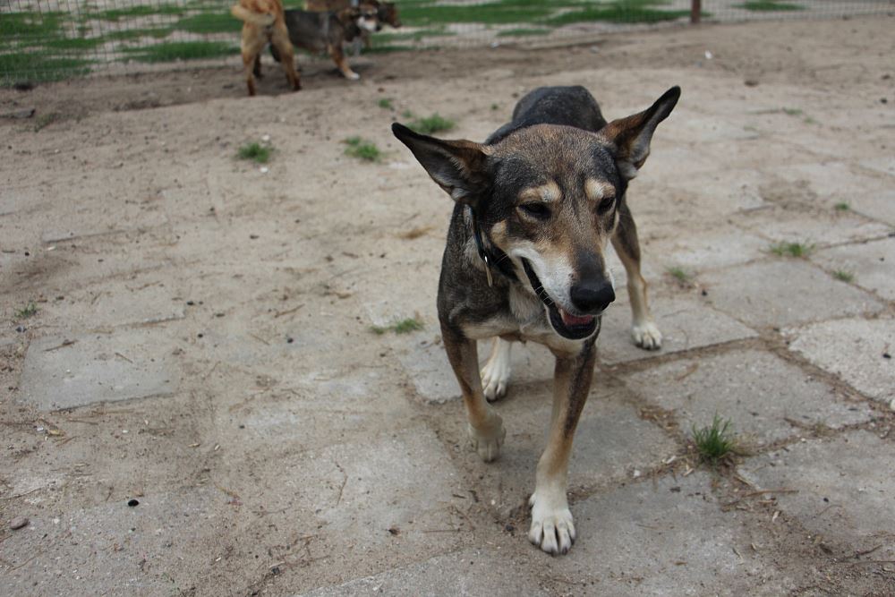 Suczka przyjechała do nas z gminy Wielichowo 2 czerwca 2022r. Była długie lata trzymana na łańcuchu. Została oceniona na skończone 8 lat. Jest mocno wychudzona. Przyjechała chora. Obecnie jest po operacji i po leczeniu. Czuje się dobrze, jeszcze musi nabrać masy, powoli jest odkarmiania. Kora jest lekko dominująca. Zgadza się z samcami, z suczkami bywa różnie. Uwielbia ludzi, bardzo jej zależy na uwadze opiekuna.