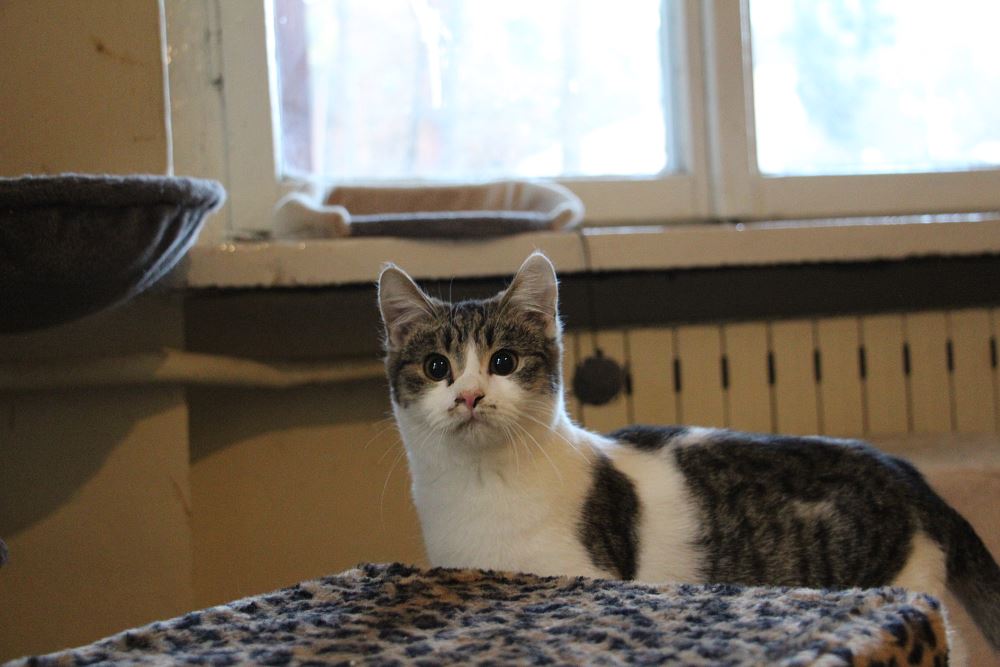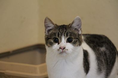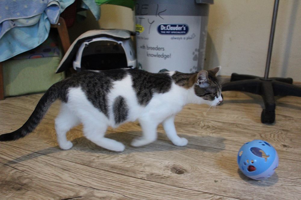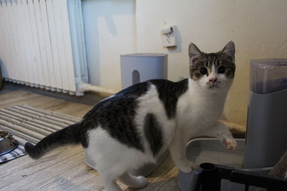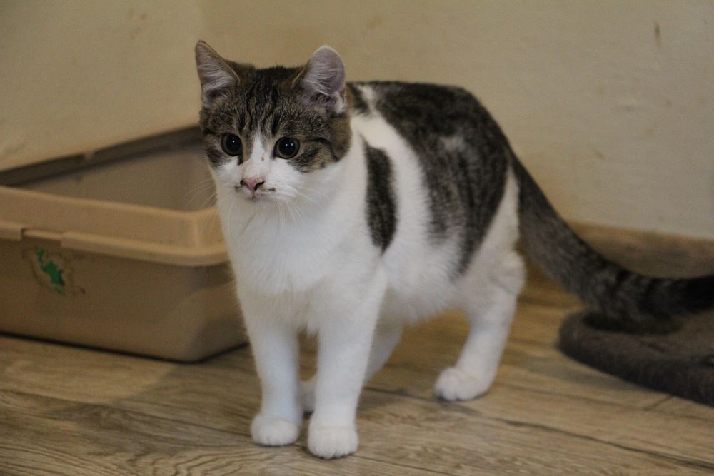 Kocurek w wieku ok. 6 miesięcy. Nieśmiały Chrupek rozgląda się za domkiem. Kontakt w sprawie adopcji 605 922 630