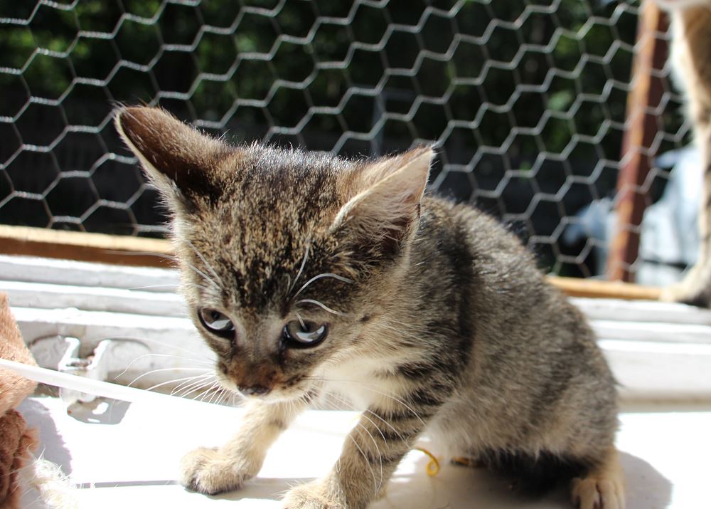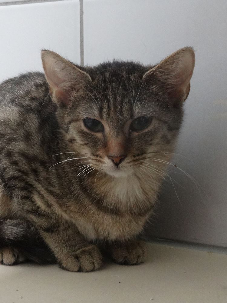 Kotka w wieku ok. 5 miesięcy. Była znaleziona mokra i poturbowana. Teraz czuje się dobrze. Ori jest po szczepieniach. Kotka jest bardzo malutka, znacznie mniejsza od rówieśników. Kontakt w sprawie adopcji 605 922 630