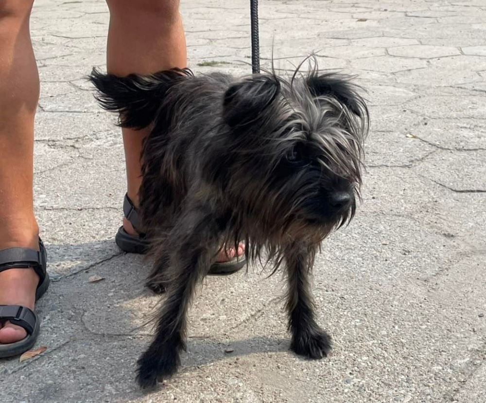 Młoda suczka około roczna odłowiona 18 sierpnia 2022 r. w Wiardunkach w gminie Ryczywół.