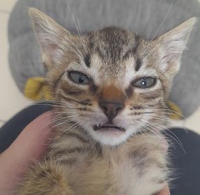 Kociak przyjechały 18 sierpnia 2022 r. ze zdziczałą matką. Obecnie ma 9 tygodni. Po pierwszym szczepieniu będzie gotowy do adopcji. Tel kontaktowy w sprawie adopcji kotów 605 922 630 (pon.- pt. 8-16)