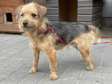 Piesek przywieiony do schroniska 13 września 2022 r. z leśniczówki w Podlesiu koło Obornik. Harry zgadza się z psami. Chętnie chodzi na spacewry. Nie może zostawać sam na wybiegu, w kojcu, ogrodzie ponieważ chodzi po płotach jak kot. Jest tak bystry, że potrafi otworzyć klamką drzwi. Jest mały, waży niecałe 6 kg. Kto chciałby dac dom spryciarzowi?