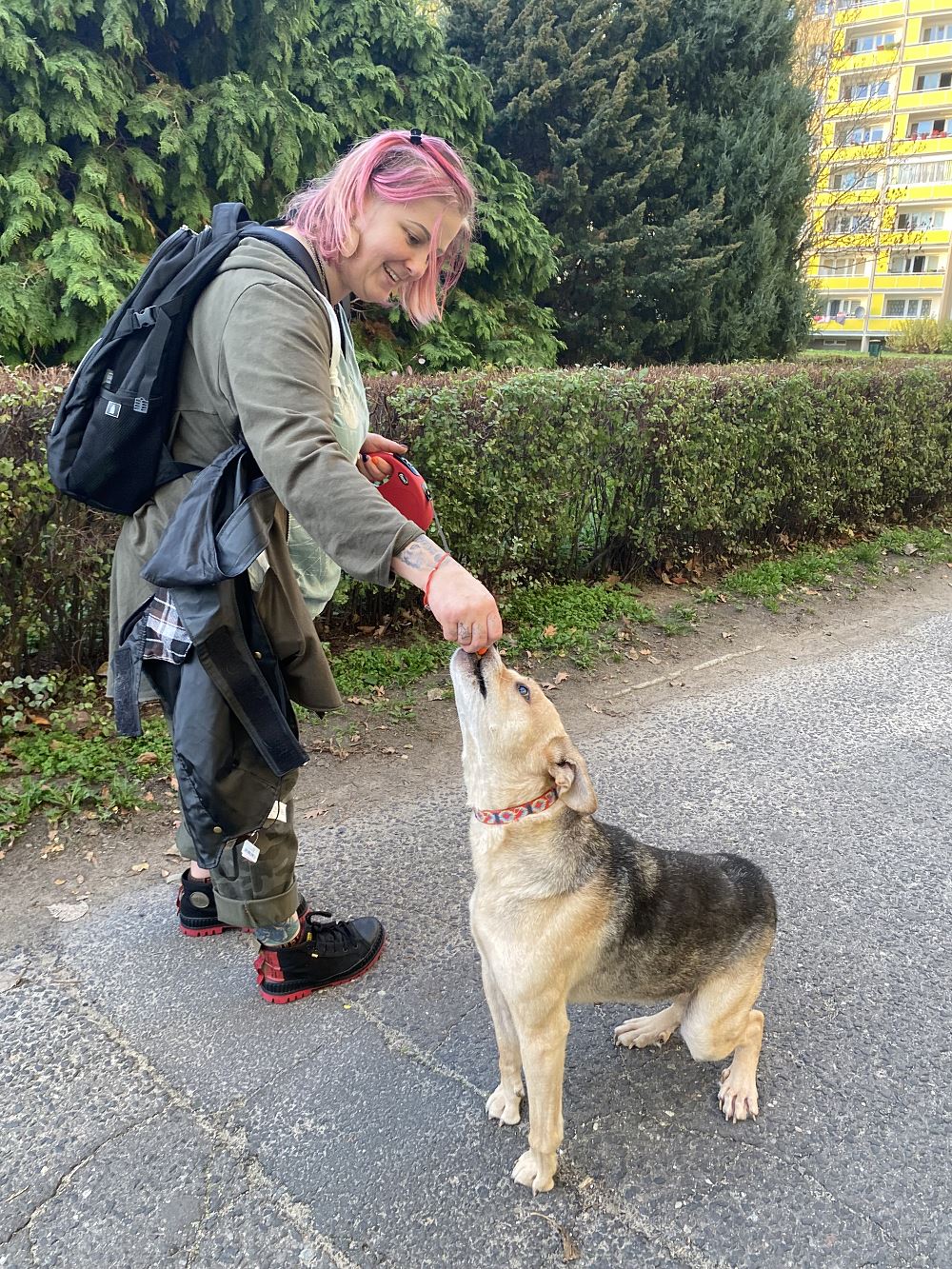 Suczka odebrana interwencyjnie 24 lipca 2022 r. przez TOZ w gminie Ryczywół. Do schroniska trafiła 27 lipca 2022 r. Jest pod opieką weterynarza. EDIT: Została oceniona na skończone 5 lat. Dzięki cudownym wolontariuszom zawdzięczam życie. Mój "opiekun" który mnie uwięził na grubym łańcuchu i aby pozbyć się problemu, po prostu chciał mnie zaglodzić i czeka aż umrę powoli bez jedzenia. Mimo iż nie chciałam umierać to byłam już tak słaba że nie dawałam rady wstawać z mokrej ziemi i błota. Próbowałam jeść kamienie które leżały wokół mnie, aż moje zęby się pościerały. Cudowne wolontariuszki mi pomogły i zabrały ze sobą . Okazało się że mam bardzo wyniszczony organizm i nie wiadomo czy w ogóle przeżyje. Jednak ja im zaufałam i postanowiłam dla nich walczyć!. Jestem teraz na domu tymczasowym i przybrałam na wadze aż 9 kg. Moja mama tymczasowa bardzo mnie chwali że robię postępy i umiem się już nawet w restauracji zachować gdzie jest duuużo ludzi. Powolutku zaczynam poznawać co to jest zabawa i nawet jest fajnie.najbardziej jednak uwielbiam spać. Jestem z psimi kumpelkami i bardzo je lubię.mogę czasem się w nie pozaczepiać, ale one rozumieją ze to taka moja zabawa. Ogólnie to kocham wszystkie zwierzęta oraz dzieci i ludzi. Jeśli chcesz mi dać dom na stałe to zadzwoń do mojej mamy tymczasowej i dowiedz się szerszych informacji o mnie . Odwdzięczę się Tobie bardzo duża miłością!.