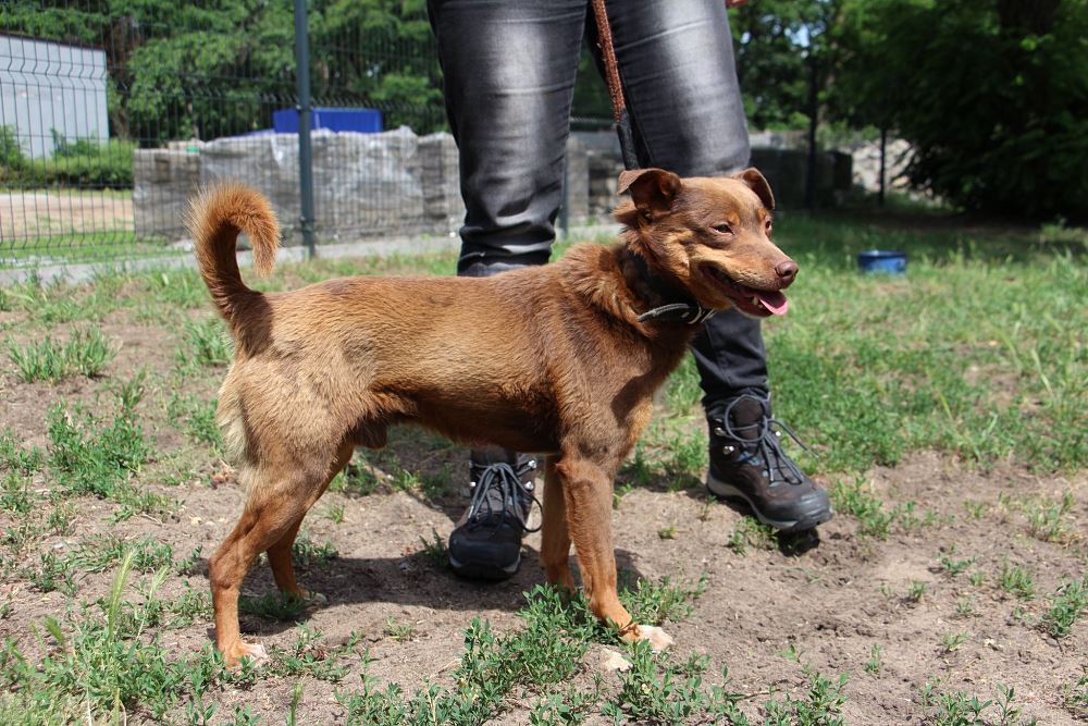 Pies odebrany interwencyjnie w gminie Ryczywół. Przyjechał do schroniska 9 maja 2022 r. Fifi ma ok. 7-8 lat. Bardzo pragnie kontaktu z człowiekiem. Na wybiegu dogaduje się z psami. Fifi waży ok. 11 kg.