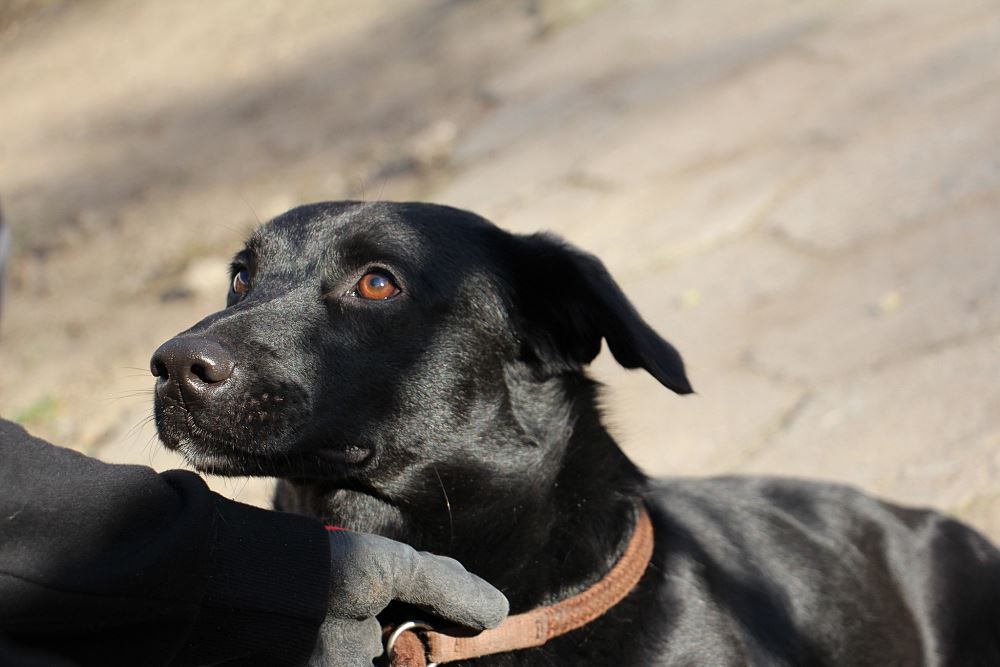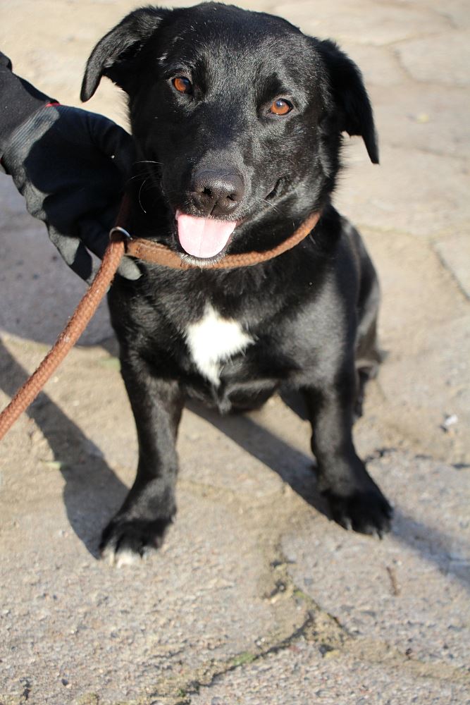 Pies przywieziony 8 listopada 2022 r. z Gościejewa w gminie Rogoźno. Ma w dniu przyjęcia ok. 1,5 roku. Potrafi pięknie chodzić na smyczy, jest grzeczny dla psów, kocha ludzi. Jest niski, ale masywny, waży 16 kg.