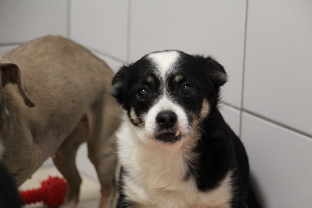 Pies przywieziony 19 stycznia 2023 r. z gminy Ryczywół. Łatek ma ok. 13 lat. Waży 6 kg. Przez całe swoje życie mieszkał w domu ze swoją psią rodziną (od roku 9 psów) i starszą panią. Pani zaniemogła, sama potrzebuje opieki. Niestety nie było ludzi, którzy zajęliby się psami, trafiły do nas. Wszyscy są bardzo przestraszeni. Powoli będziemy ich przyzwyczajać do nowej sytuacji, do kontaktu z ludźmi i do adopcji. Pieski nie chodzą na smyczy, nie pozwalają się dotykać. Większość z nich podchodzi po jedzenie do ręki. W doświadczonym domu tymczasowym proces oswajania byłby łatwiejszy i szybszy.