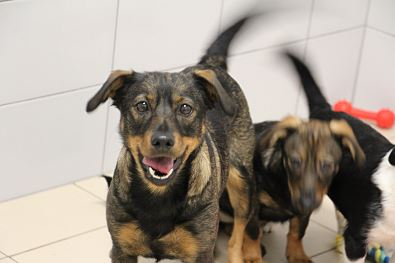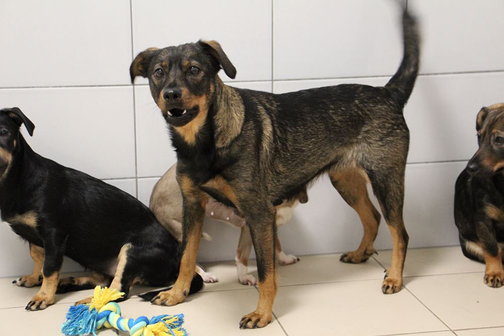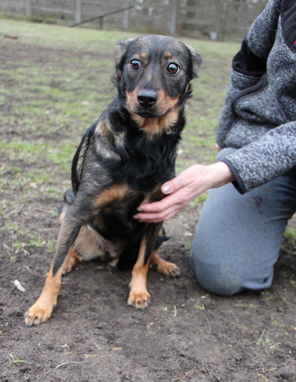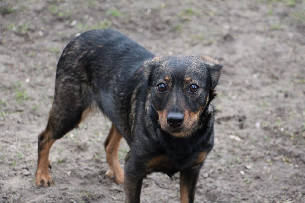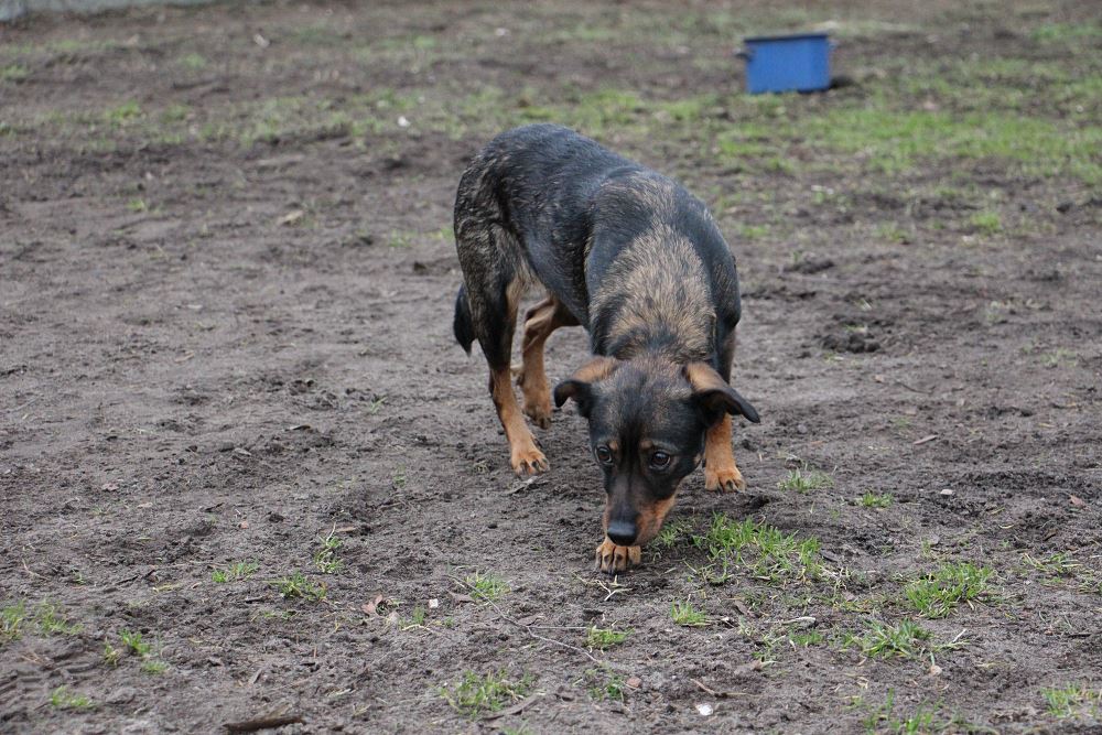 Suczka przywieziony 19 stycznia 2023 r. z gminy Ryczywół. Lucyna ma ok. 2-3 lat. Waży 13 kg. Lucyna jest matką dziesięciomiesięcznych szczeniąt, z którymi przyjechała. Przez całe swoje życie mieszkała w domu ze swoją psią rodziną (9 psów) i starszą panią. Pani zaniemogła, sama potrzebuje opieki. Niestety nie było ludzi, którzy zajęliby się psami, trafiły do nas. Wszyscy są bardzo przestraszeni. Powoli będziemy ich przyzwyczajać do nowej sytuacji, do kontaktu z ludźmi i do adopcji. Pieski nie chodzą na smyczy, nie pozwalają się dotykać. Większość z nich podchodzi po jedzenie do ręki. W doświadczonym domu tymczasowym proces oswajania byłby łatwiejszy i szybszy.