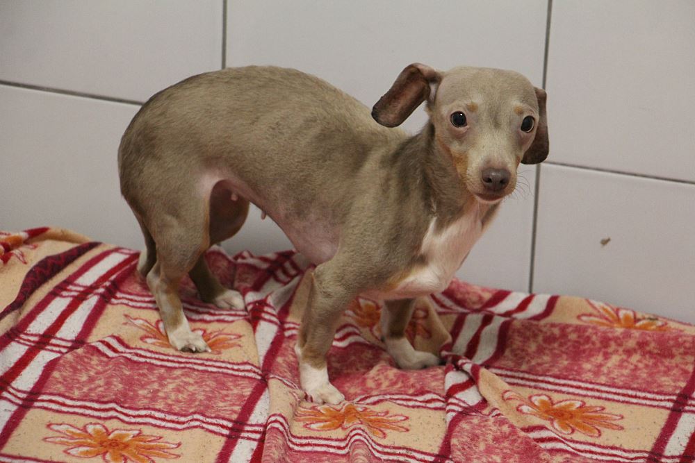 Suczka przywieziony 19 stycznia 2023 r. z gminy Ryczywół. Pusia ma ok. 2-3 lat. Waży 4,3 kg. Przez całe swoje życie mieszkała w domu ze swoją psią rodziną (9 psów) i starszą panią. Pani zaniemogła, sama potrzebuje opieki. Niestety nie było ludzi, którzy zajęliby się psami, trafiły do nas. Wszyscy są bardzo przestraszeni. Powoli będziemy ich przyzwyczajać do nowej sytuacji, do kontaktu z ludźmi i do adopcji. Pieski nie chodzą na smyczy, nie pozwalają się dotykać. Większość z nich podchodzi po jedzenie do ręki. W doświadczonym domu tymczasowym proces oswajania byłby łatwiejszy i szybszy.