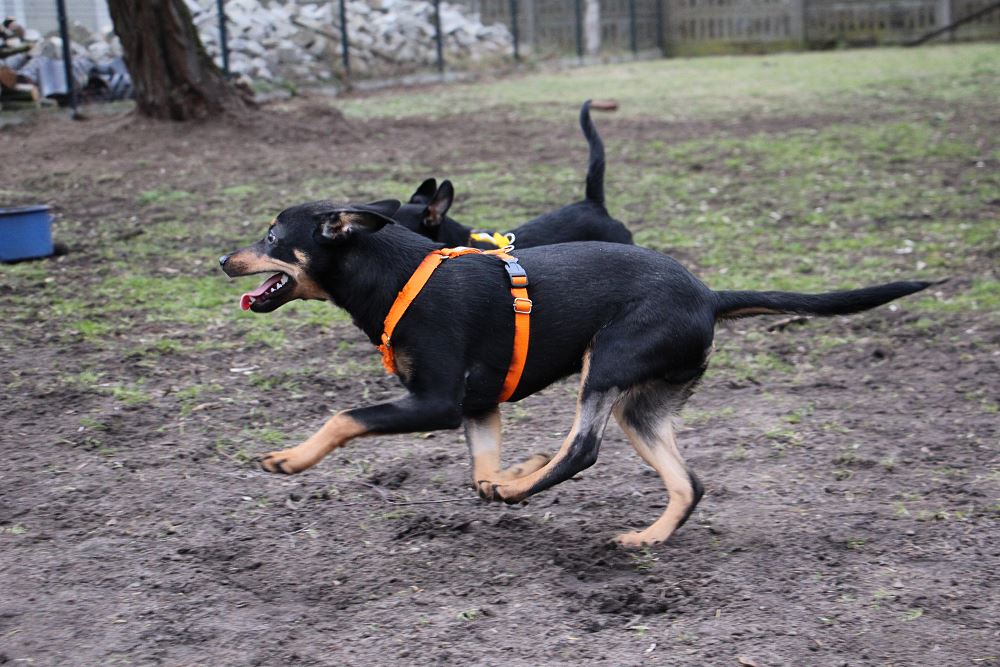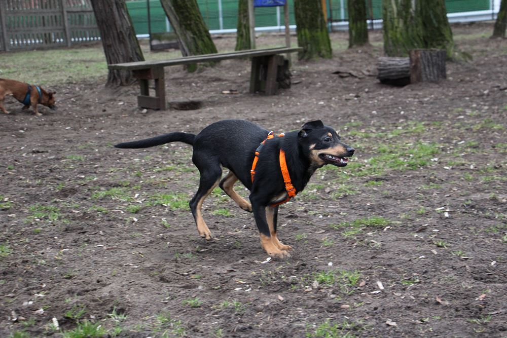 Marzec 2023- ładnie chodzi na spacery, zgadza się z innymi psami z którymi chętnie się bawi, utrzymuje czystość.