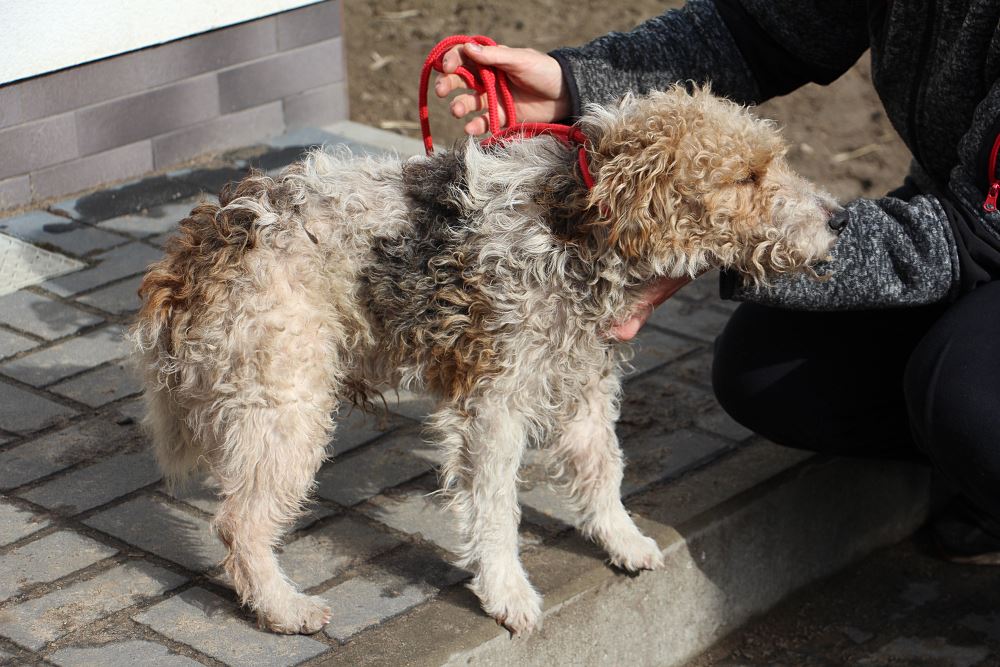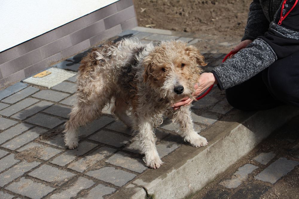 Pies przywieziony 8 marca 2023 z Brodów w gminie Lwówek. Jest psem niedużym waży ok 10 kg, chodzić na smyczy potrafi ale nie jest przyzwyczajony- najprawdopodobniej długo chodził luzem. W stosunku do ludzi jest bardzo kochany.
