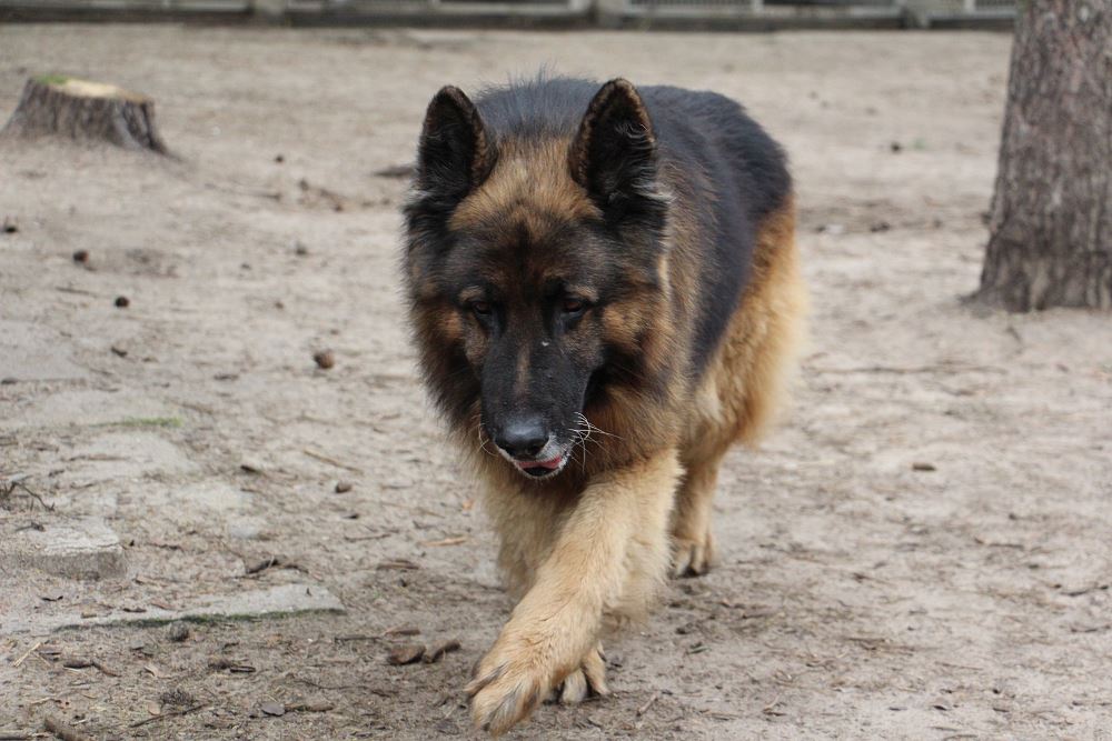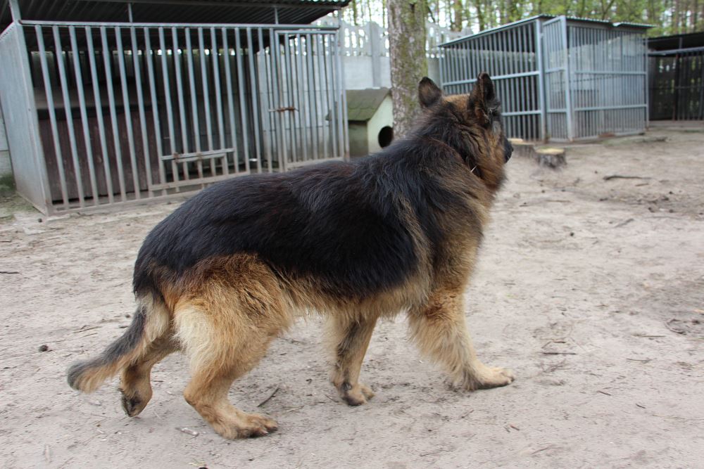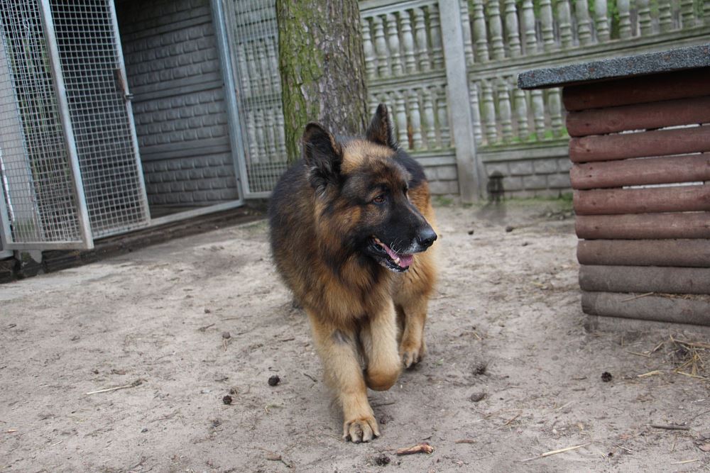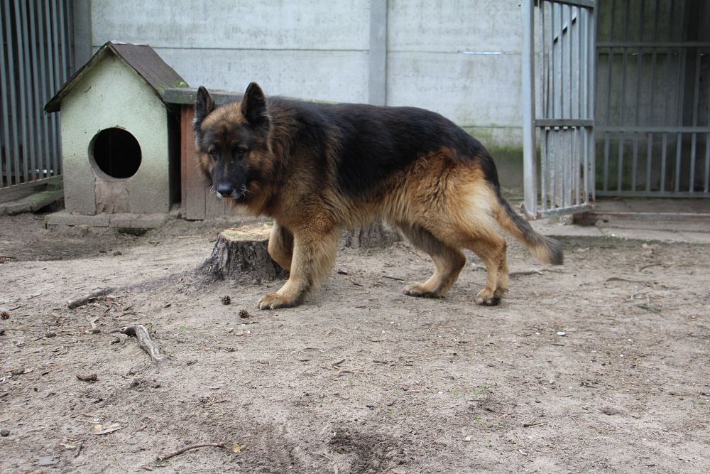 Pies, owczarek niemiecki 31 marca 2023 roku. Pies jest dojrzałym samcem, bez czipa, bardzo łagodny, nie potrafił chodzić na smyczy a teraz dzieci chcą chodzić z nim bo pięknie, spokojnie chodzi, szybko się uczy komend. Utrzymuje czystość, nie jest agresywny do psów ale jest dominantem.