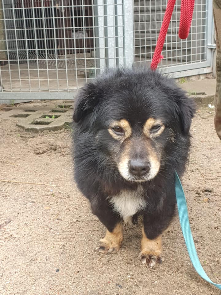 Pies odebrany interwencyjnie 19 kwietnia 2023 w wieku 7 lat. Pies był utrzymywany na łańcuchu. Nie jest przyjacielski jak na razie dla ludzi.
