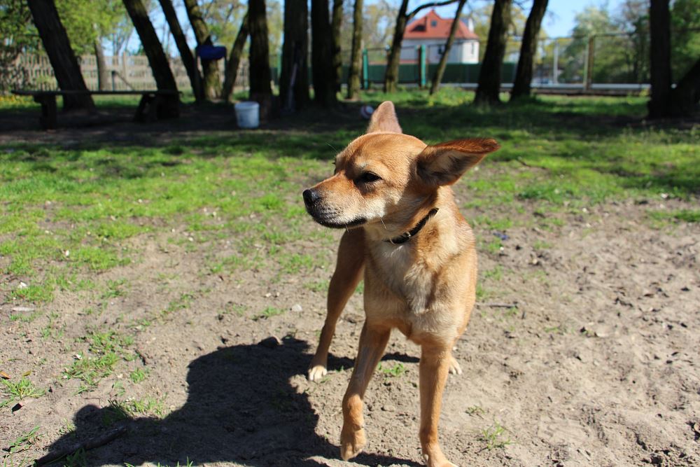 Malwinka, suczka przywieziona 16 kwietnia 2023 r. z interwencji. Malwinka jest pod opieką TOZ. Przyjechała bardzo nieufna, nieznająca kontaktu z człowiekiem. Praca nad jej zaufaniem przyniosła wspaniałe efekty. Sunia najchętniej nie schodziłaby z kolan opiekuna. Uwielbia tulenie, głaskanie. Potrafi już chodzić na smyczy. Zgadza się z psami.