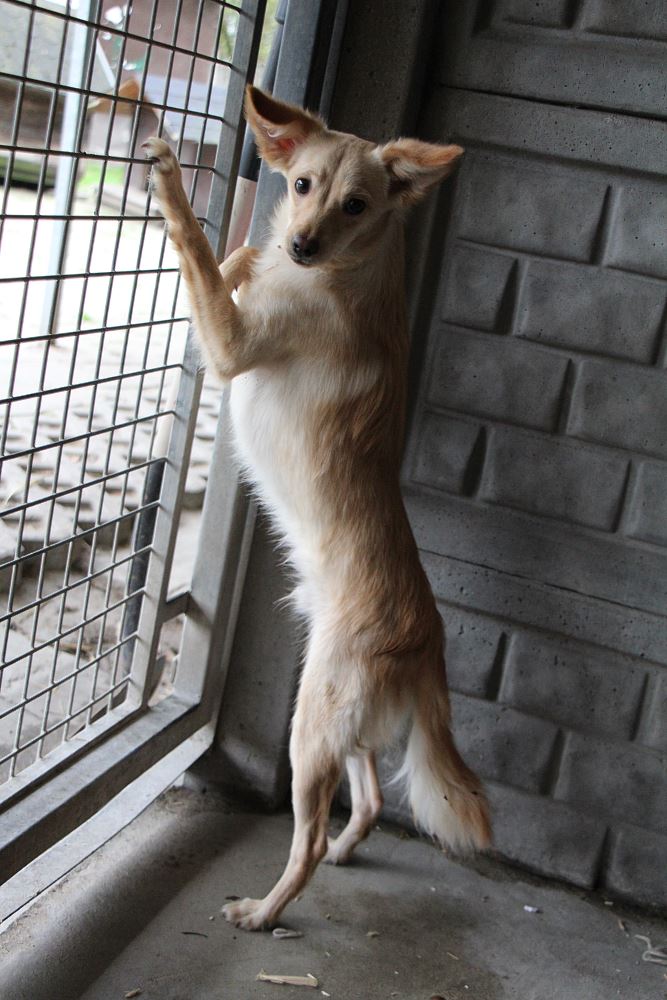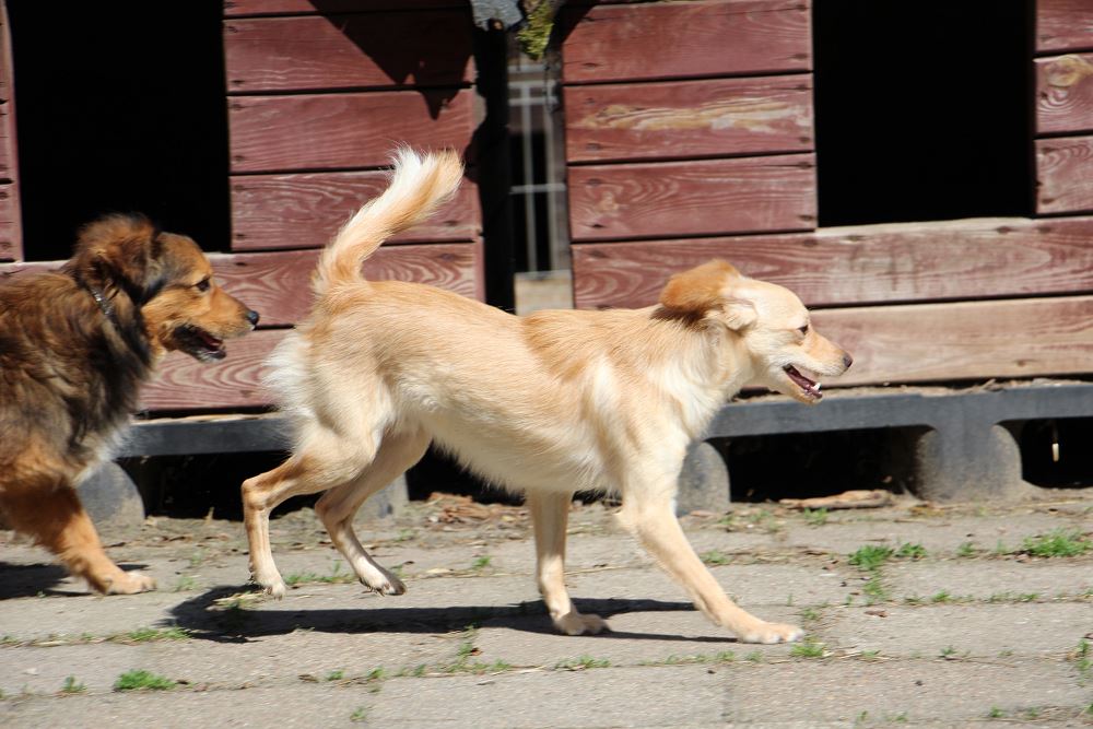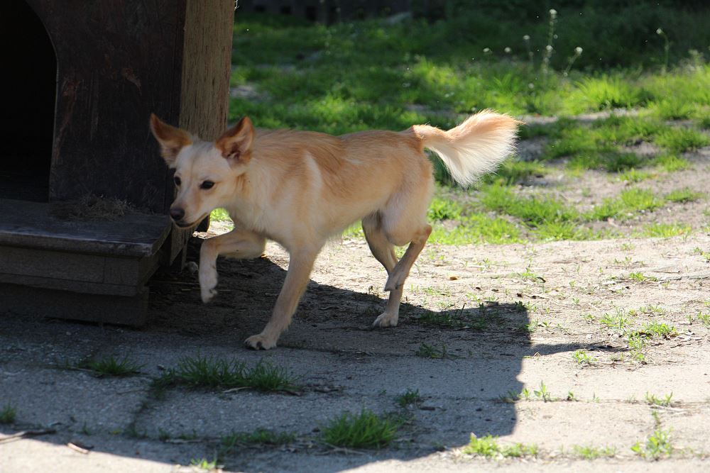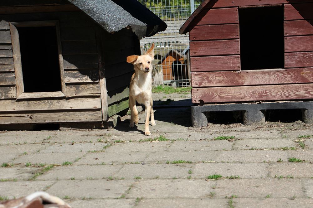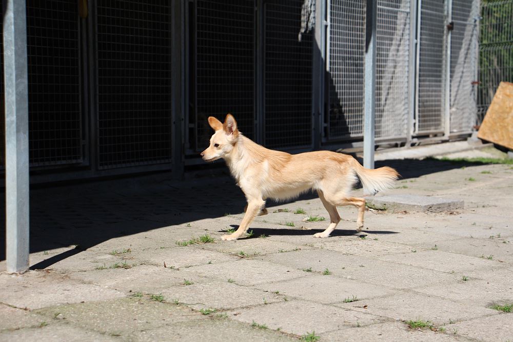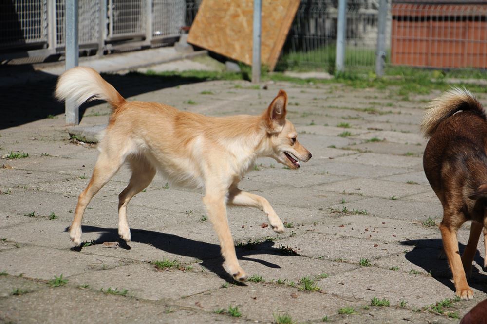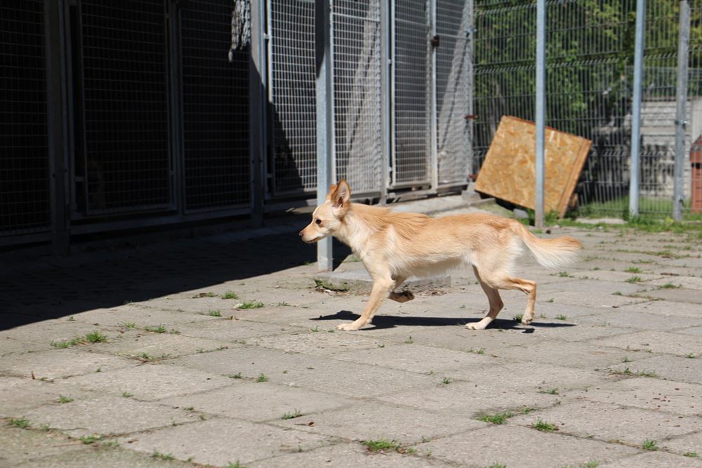 Gacek pies przywieziony 22 kwietnia 2023 r. z interwencji. Bardzo lubi chodzić na spacery, ale jeszcze większą przyjemność sprawia mu wspinanie się na kolana i tulenie do opiekuna. Początkowo, gdy przyjechał był bardzo nieufny. Nie znał kontaktu z człowiekiem. Pracowaliśmy nad zaufaniem, zmiany postępowało dość szybko.