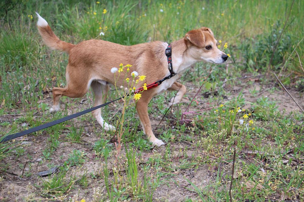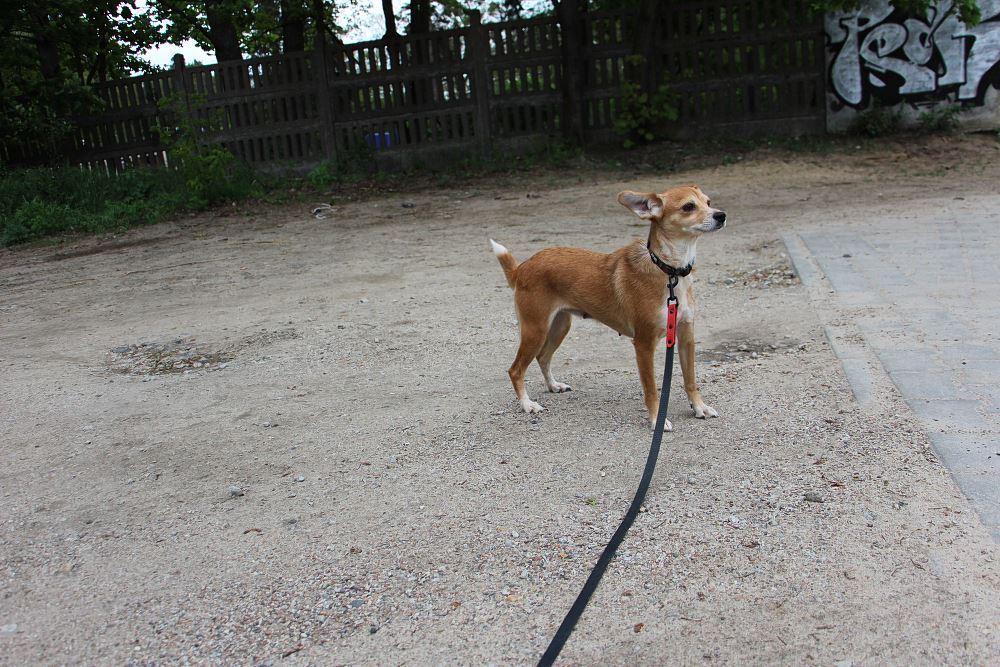 Malinka ma ok. 2 lat. Jest filigranową panienką. Najchętniej siedziałaby na kolanach opiekuna. Chetnie chodzi na spacery. Jest łagodna dla ludzi. Zgadza się z psami. Swoich opiekunów kocha tak bardzo, że wspina się za nimi po płocie :)