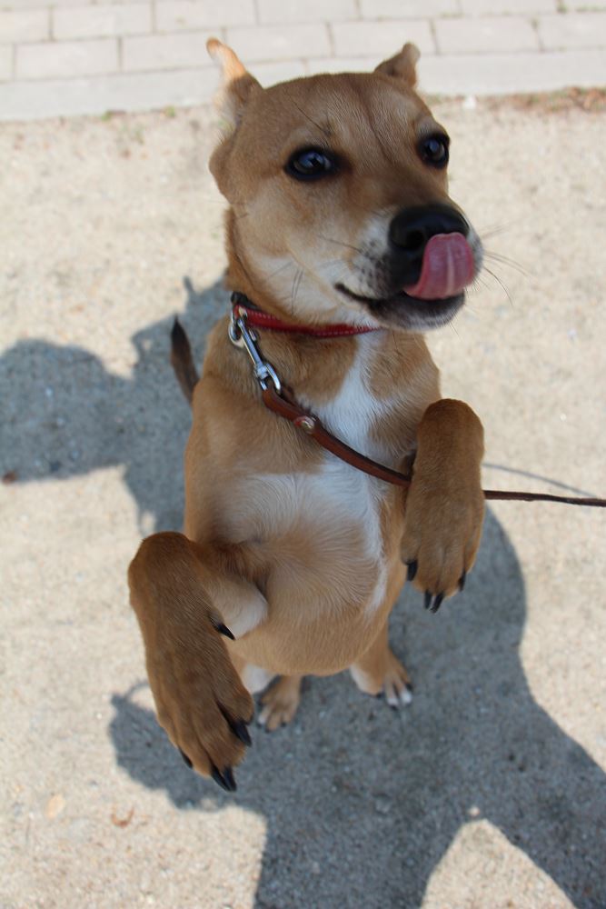 Pies- właściwie starszy szczeniak, został przywieziony 9 maja 2023 r. po godz. 21.00 przez osoby prywatne i pozostawiony w schronisku. Psiak jest młody, przestraszony miejscem. Bobo w pierwszym kontakcie jest nieufny do ludzi. Ale zabrany z kojca na spacer cieszy się, tuli i radośnie wędruje z opiekunem. Jets mały waży niecałe 10 kg.