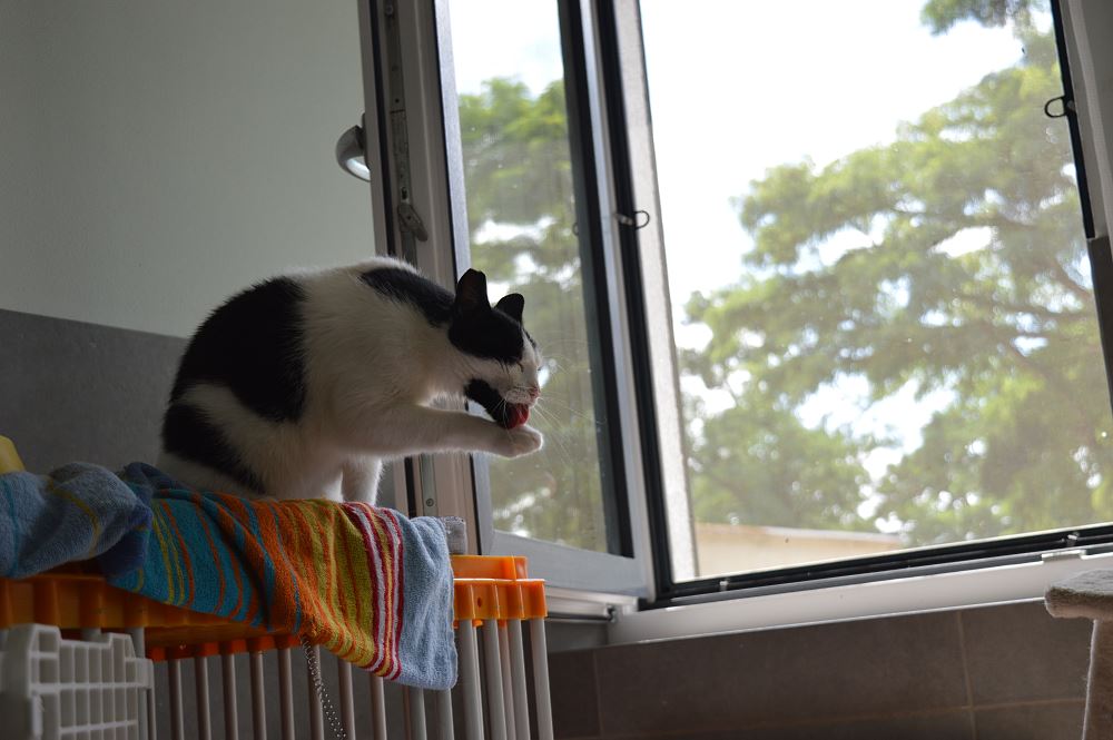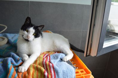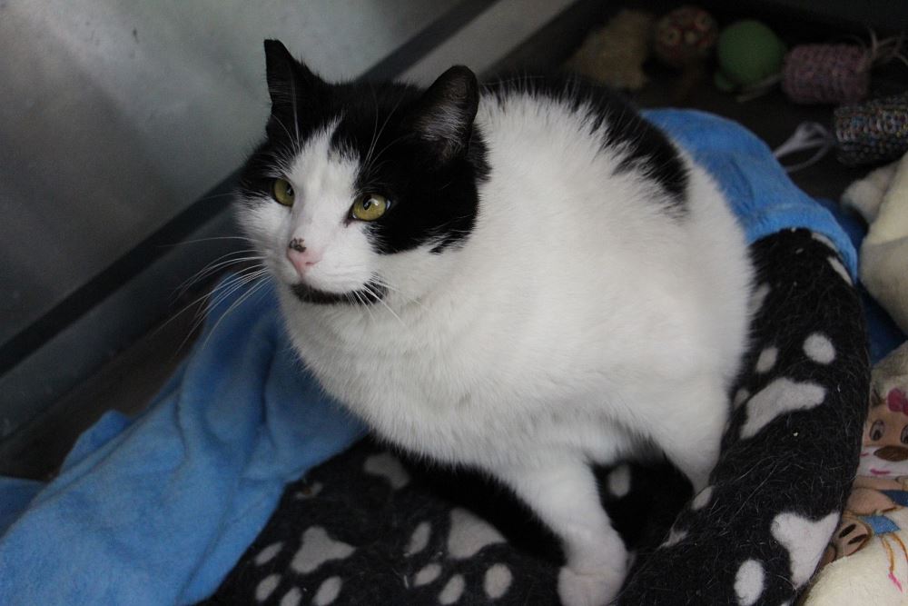 Bożenka 2-3 letnia czarno-biała kotka, życie ją nie oszczędziło. Trafiła do lecznicy w kwietniu po wypadku, przeszła operacje usunięcia rzepki, ma problemy ze wzrokiem. Aktualnie przechodzi rekonwalescencje. Będzie szukała domu niewychodzącego, testy ma ujemne, do schroniska trafiła już po zabiegu. Obowiązuje umowa adopcyjna, kotka mimo bólu jakiego doświadczyła daje się głaskać, lubi zabawę piórkiem, wszystko z umiarem.