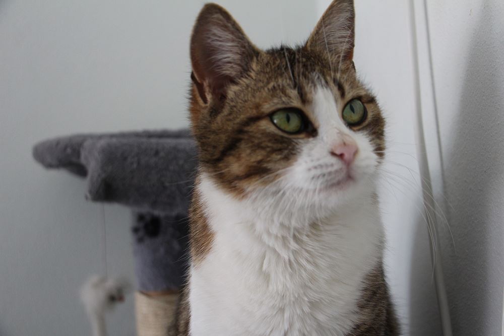 Mirabelka przywieziona 1 maja 2023 ze Słonaw- weszła na drzewo i nie mogła zejść- kolejna piękność w schronisku, to młoda kotka w wieku ok. 2 lat, oswojona, gaduła. Domaga się głaskania, aktualnie przebywa z Preclem i trochę go ustawia. Testy ma ujemne, jest po szczepieniach, zaczipowana, odrobaczona, odpchlona. Z książeczką zdrowia, obowiązuje umowa adopcyjna oraz dom niewychodzący