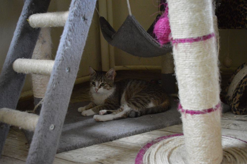 Młoda ok. 1,5 roczna koteczka, oswojona gadatliwa, na widok człowieka ugniata łapkami. Przebywała w domu tymczasowym i pomagała w opiece nad kociętami, które zostały porzucone. Pięknie dogaduje się z innymi kotami, wróciła już do Schroniska i czeka na swoich ludzi!!