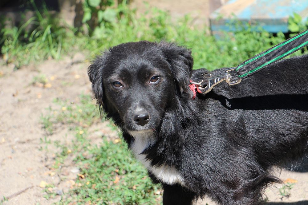Suczka przywieziona 6 czerwca z Romanowa Dolnego z gminy Czarnków. Jest mała ma 9 kg i około 1,5 roku +/- Jest przyjacielska, pogodna, zna smycz. Brak czipa