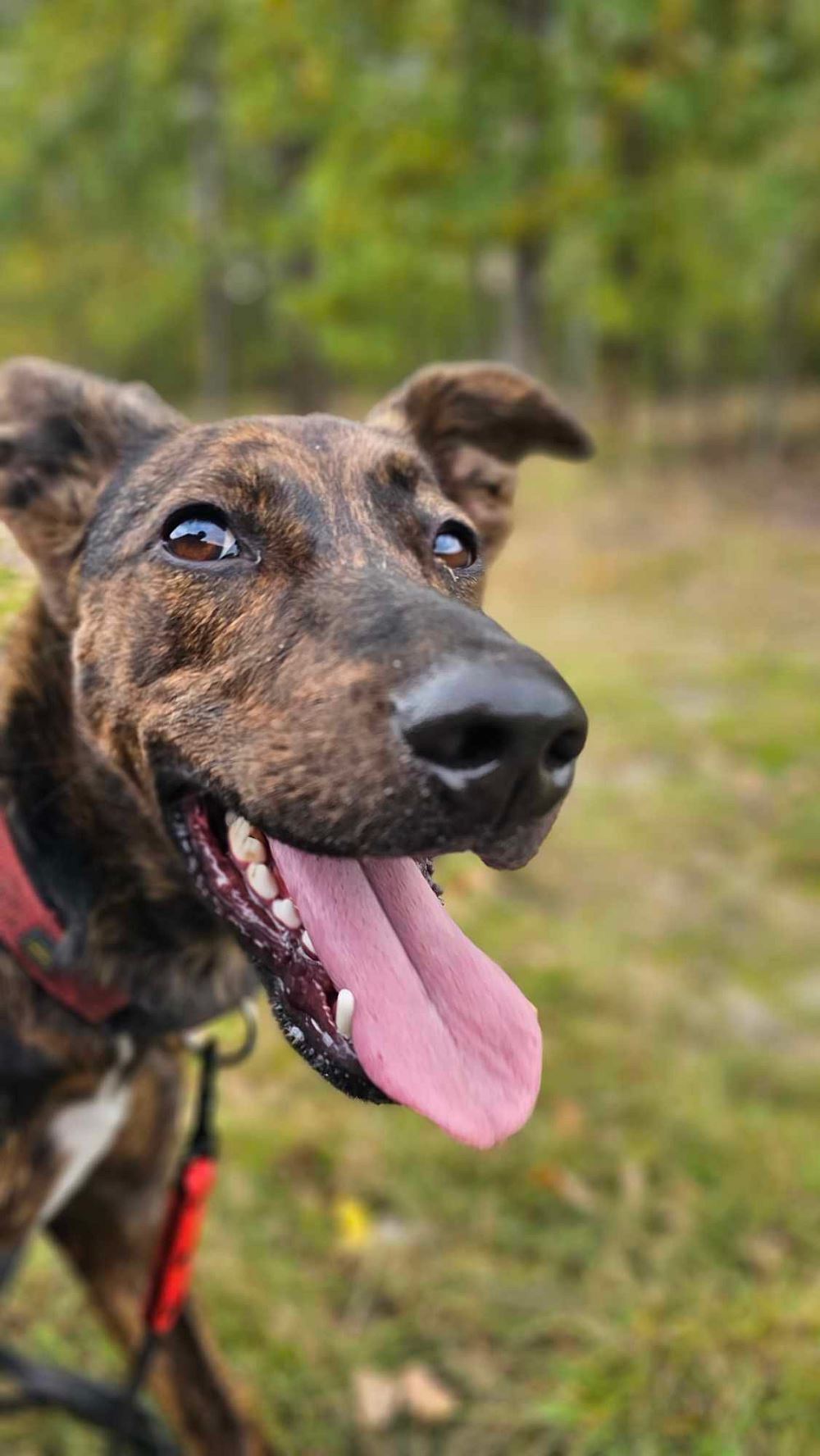 Lala została odebrana interwencyjnie w kwietniu 2023 r. W poprzednim domu nie radzono sobie z jej energią i przywiązywano na całe dnie do nogi stołu. Potem Lala przebywała w domu tymczasowym, w którym dużo czasu spędzała sama na dworze i z nudów przeskakiwała między podwórkami (płot 1,5 m). Ostatecznie w piątek 2 czerwca trafiła do schroniska. Lala ma ok. 1 roku, jest średniej wielkości, waży niecałe 20 kg. Jest bardzo energiczna, kocha ludzi, spacery. Bawi się ciągle piłeczką. Zgadza się z psami. Sunia jest podopieczną TOZ i z tą organizacją trzeba podpisać umowę adopcyjną. Zainteresowanych zapraszamy na zapoznanie z Lalą i do wypełnienia ankiety przedadopcyjnej. Dogaduje się z kotami, przychodzi na zawołanie. Potrzebuje opiekuna, który da jej dawkę ruchu, aktywności i zajęć, ale tez zadba o wyciszenie i odpoczynek suni.