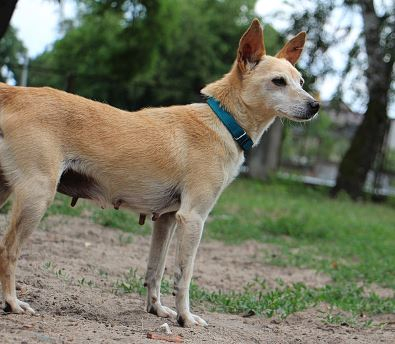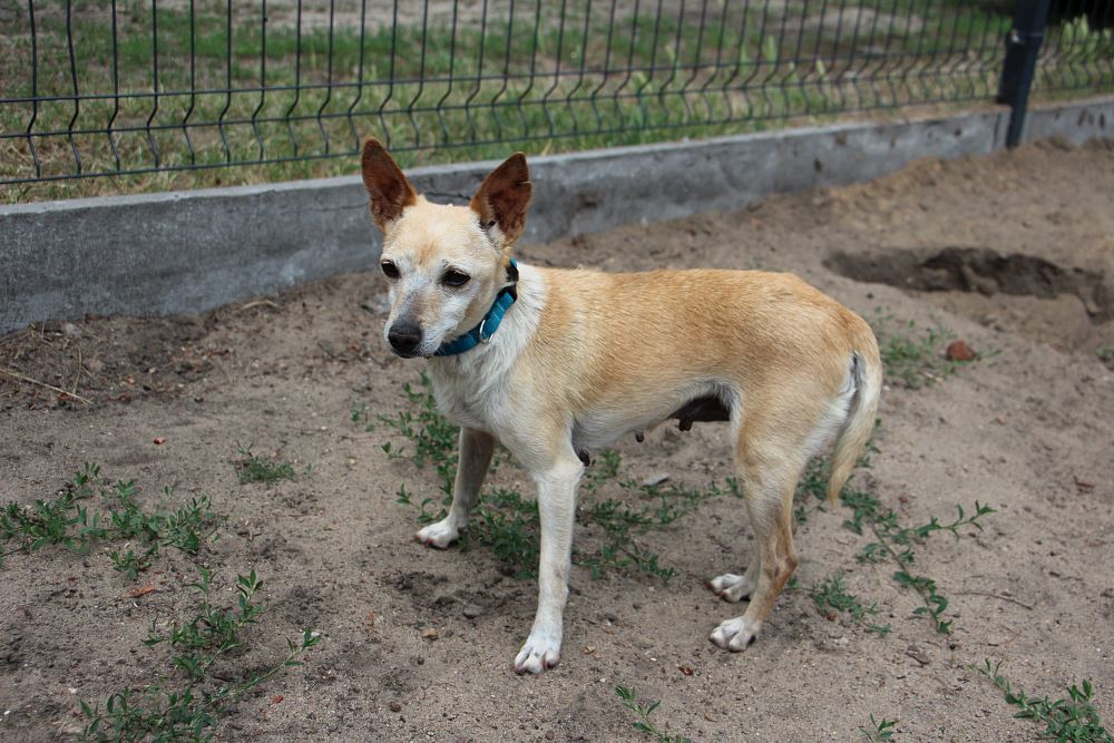 Sunia przywieziona do schroniska 15 czerwca 2023 r. z interwencji w gminie Grodzisk Wlkp. Psotka mieszkała w jednym domu z Sylwią. Obie sunie mają po 12 lat. Rodziły wielokrotnie. Psotka jest malutka na wysokich nóżkach. Waży ok. 6-7 kg. Sunia ma słabe serce, dostaje leki. Jest bardzo spokojna, łagodna. Zgadza się z psami i kotami.