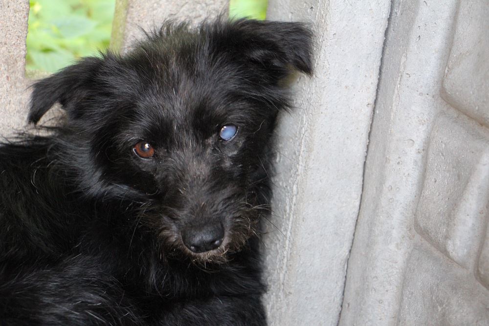 Pies przywieziony 26 czerwca 2023 r. z gminy Kamieniec. Piesek ma ok. 2 lat. Jest bardzo przestraszony. Ma stary uraz oka. Skye waży ok. 6 kg.