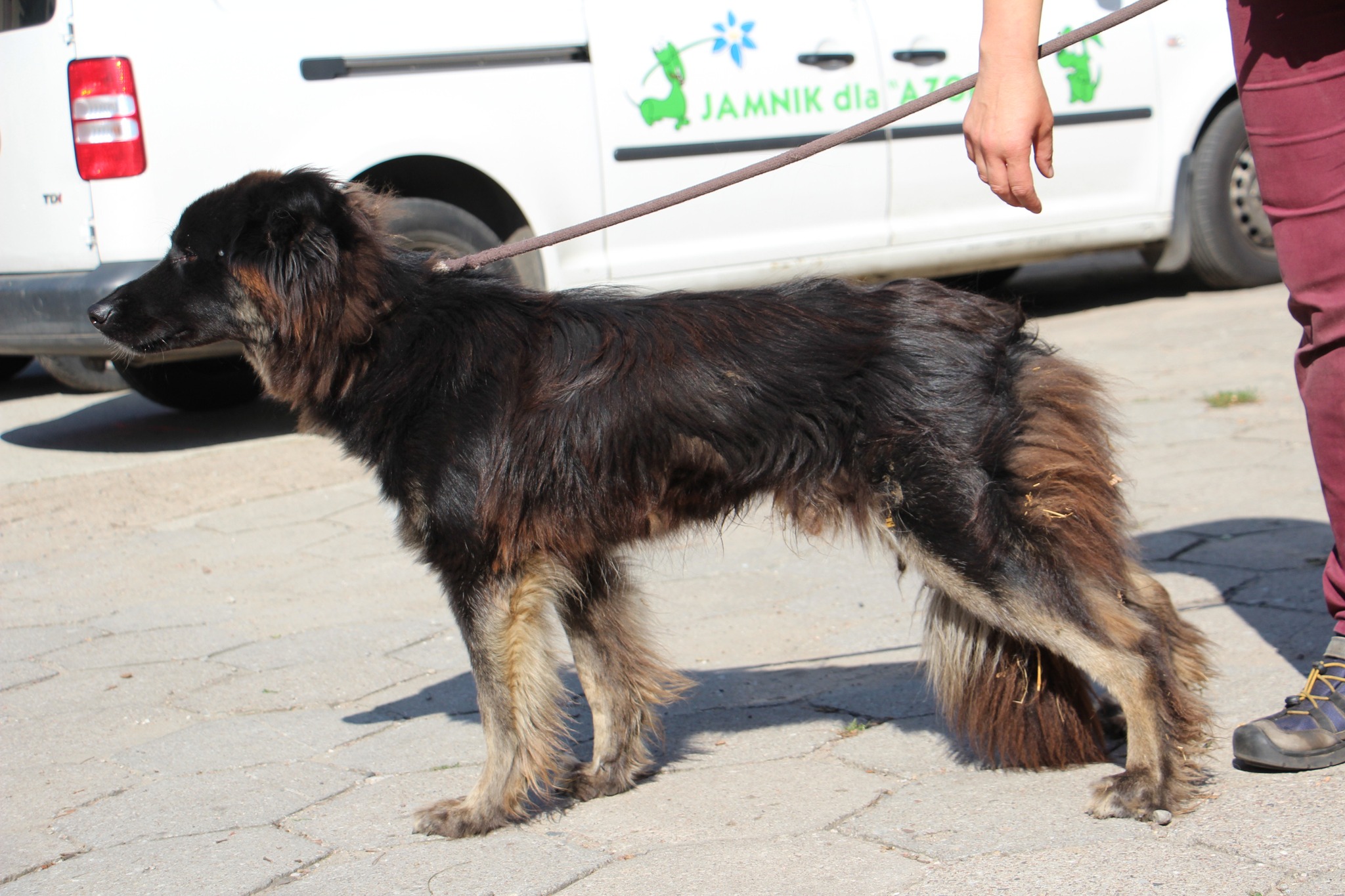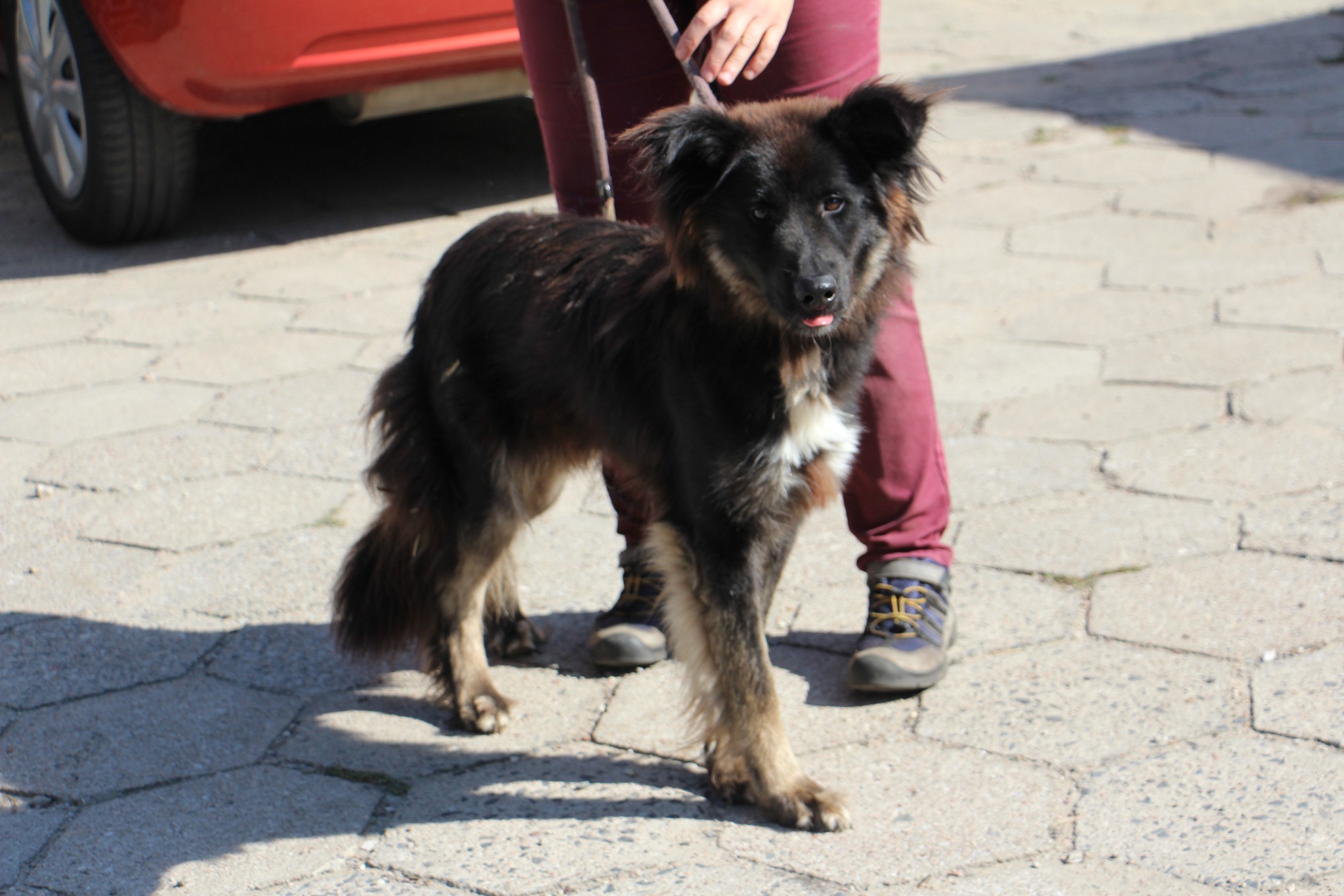 Tobi, pies przywieziony 11 sierpnia 2023 z gminy Nowy Tomyśl z miejscowości Grubska. Pies od kilku dni się błąkał. Jest to młodziak, waży zaledwie 22 kg, jest bardzo chudy. Brak czipa. Pies jest na 15 dniowej kwarantannie.
