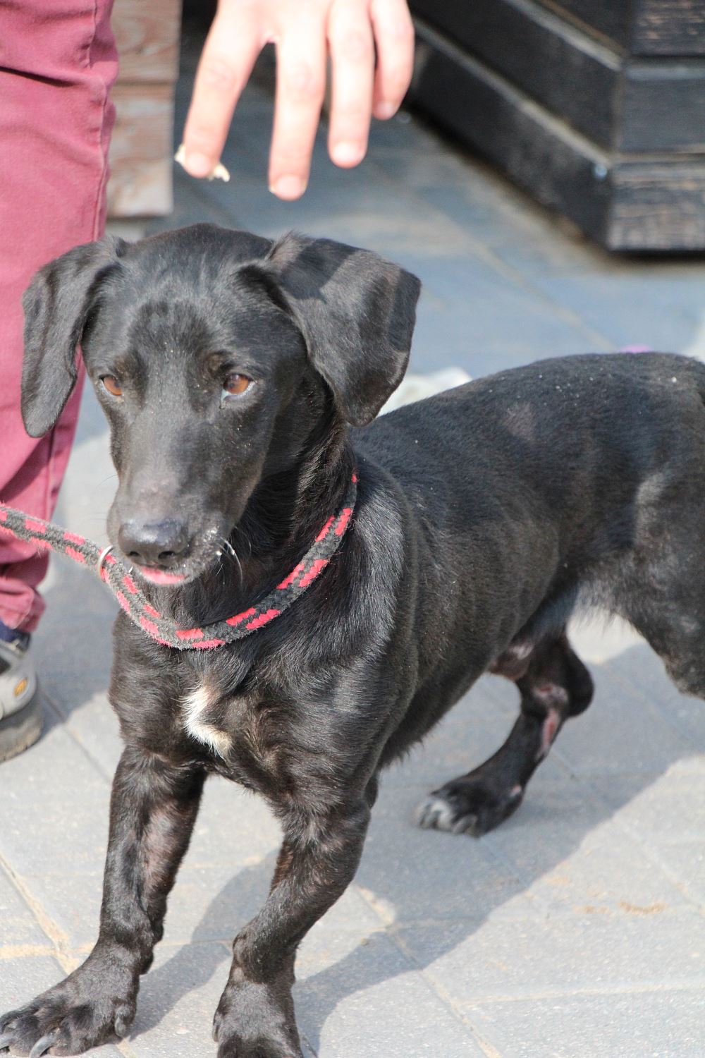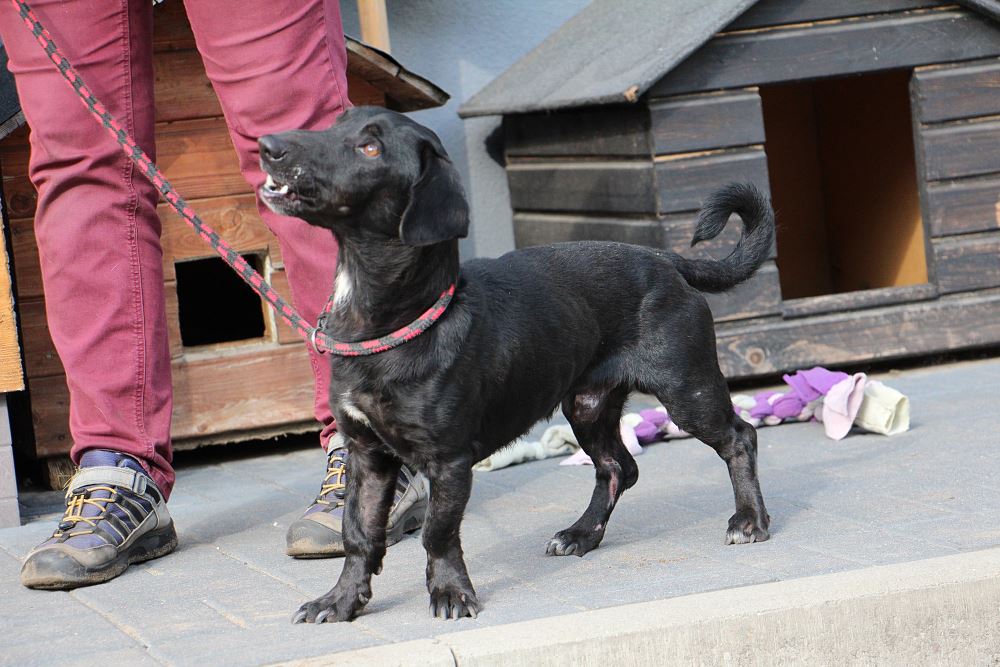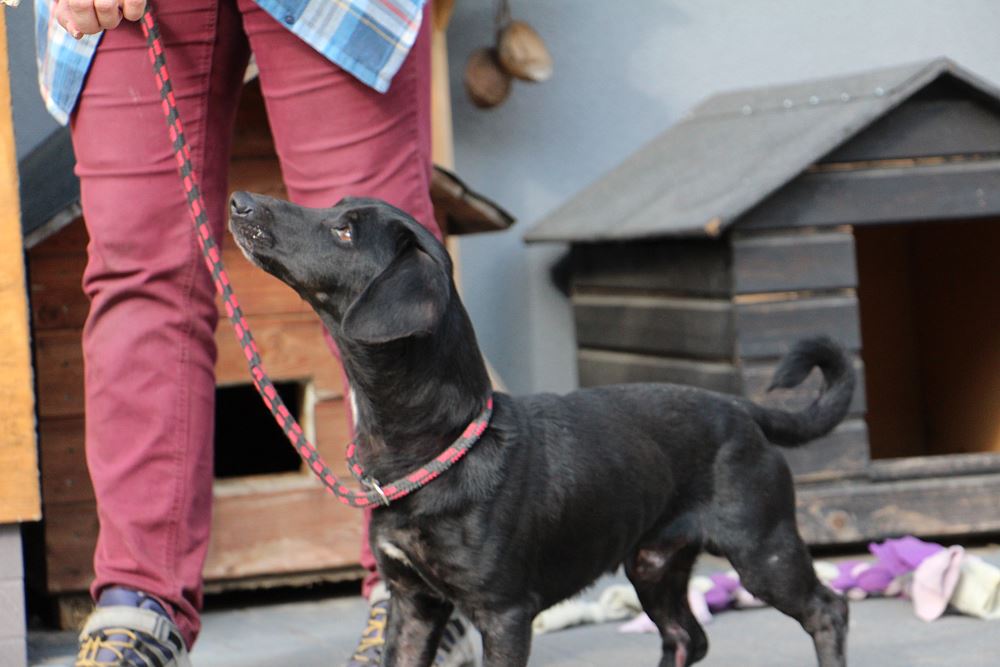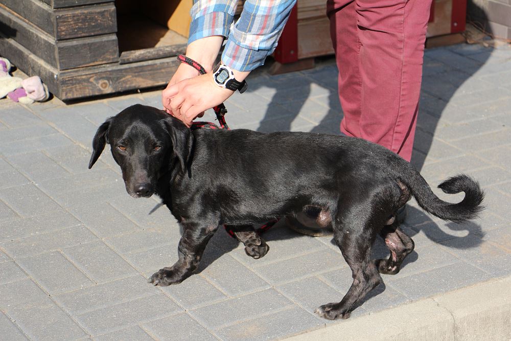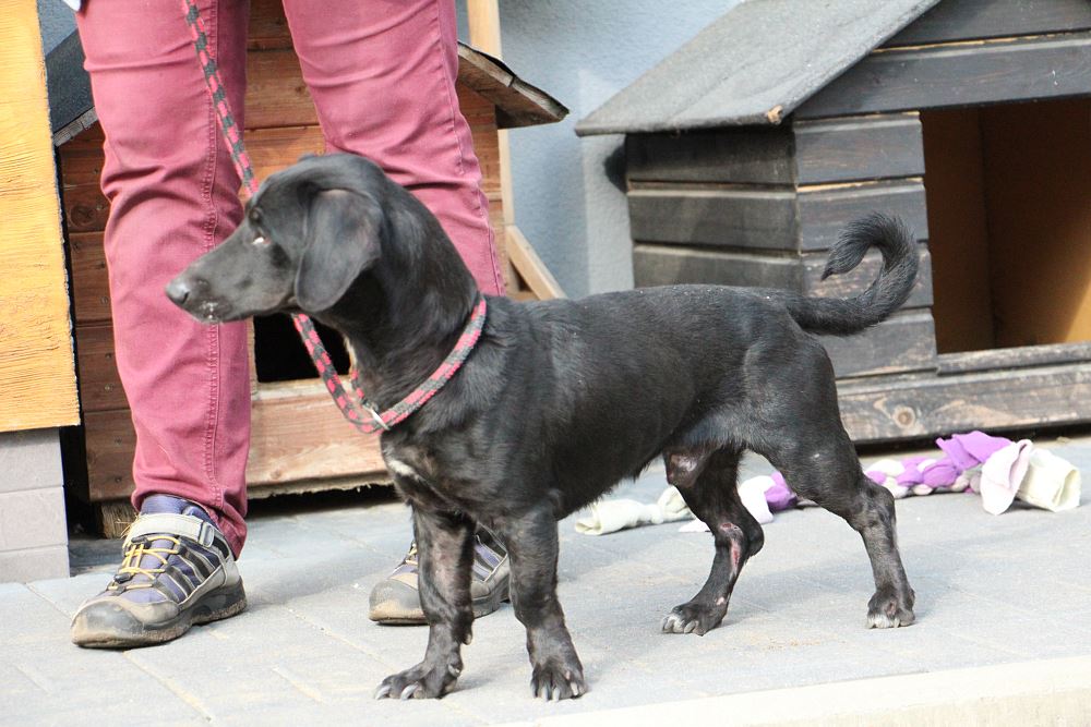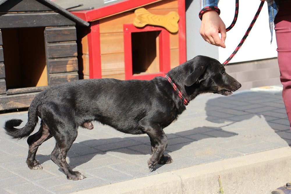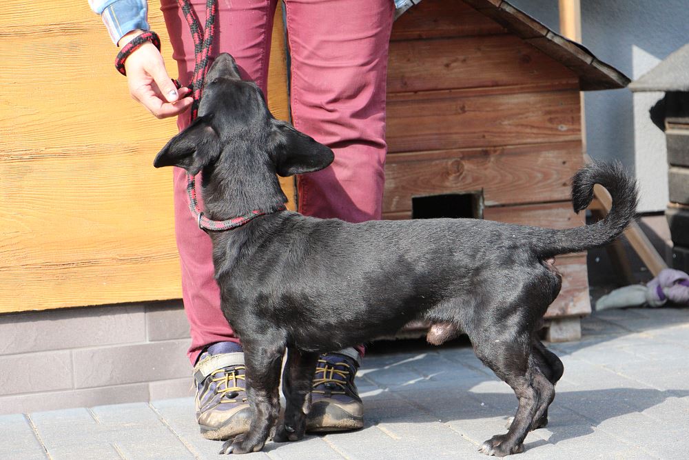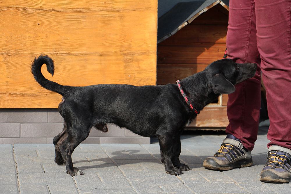 Pies złapany 23 września 2023 r. na ul. Okrężnej w Obornikach. Lejek ma ok. 2 lat, waży niecałe 10 kg. Jest bardzo szczupły. Potrafi chodzić na smyczy. W budowie trochę jak jamnik.