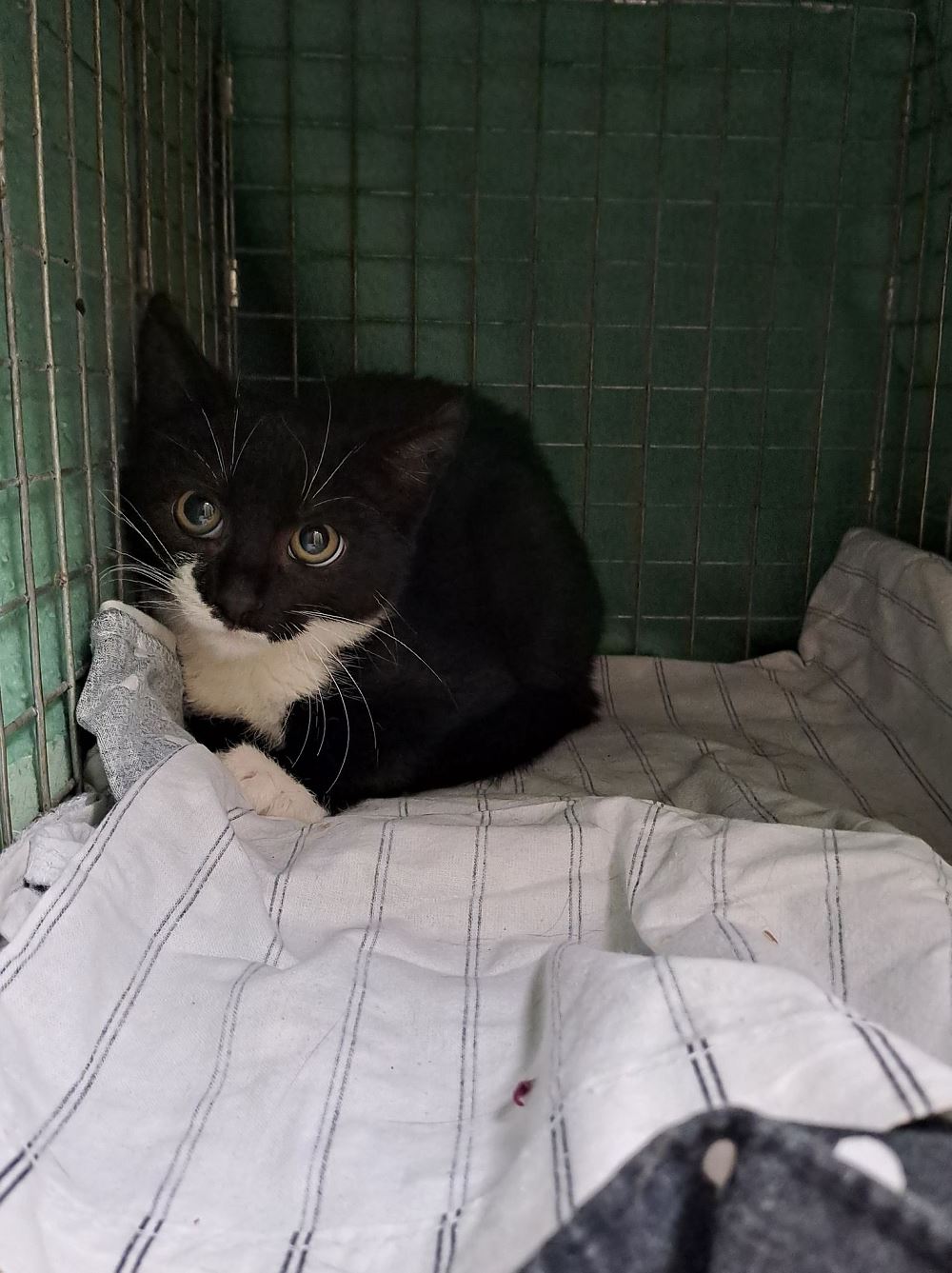 Łatka to młoda czarno-biała kotka, ma około 5-6 miesięcy. Jej historia jest dość smutna ale i często spotykana. Została znaleziona pod mostem, dobrzy ludzie wiedzieli co zrobić - zabezpieczyli ją i przynieśli do schroniska. Koteczka jest przerażona nowym miejscem oraz sytuacją, w pierwszym kontakcie jest nieufna, potrafi syknąć, jak się do kogoś przyzwyczai potrafi jeść przy człowieku. Uwielbia leżakować na hamaku, posiada książeczkę zdrowia, odrobaczona/odpchlona, jest po testach fiv/fel, zaszczepiona. Przyszły opiekun powinien być wyrozumiały, cierpliwy i wytrwały.
