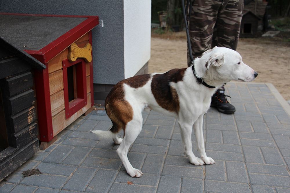 Pies, młodziak do roku. Został 18 października 2023 r. przerzucony przez płot w schronisku w Jędrzejewie w gminie Czarnków. Psiak zadbany, grzeczny. Łagodny dla ludzi.