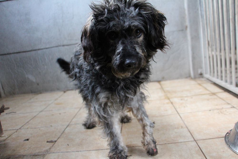 ALFIK Pies przywieziony 22 listopada 2023 r. z gminy Wielichowo. Alfik ma 3 lata. Wiemy, że lubi dzieci. Jest łagodny. Niestety mieszkał w ciężkich warunkach i ze słodkiego szczeniaczka, stał się zakołtunionym, smutnym dorosłym psem z chora łapką. Jego lewa łapa uległa kontuzji. Musiał wiele tygodni lub miesięcy chodzić z bólem, ciągnąc łapkę po podłożu. Będziemy ją diagnozować. Mamy nadzieję, że uda się ją uratować. Kto pokocha te oczyska, z łapką czy bez to bez znaczenia?