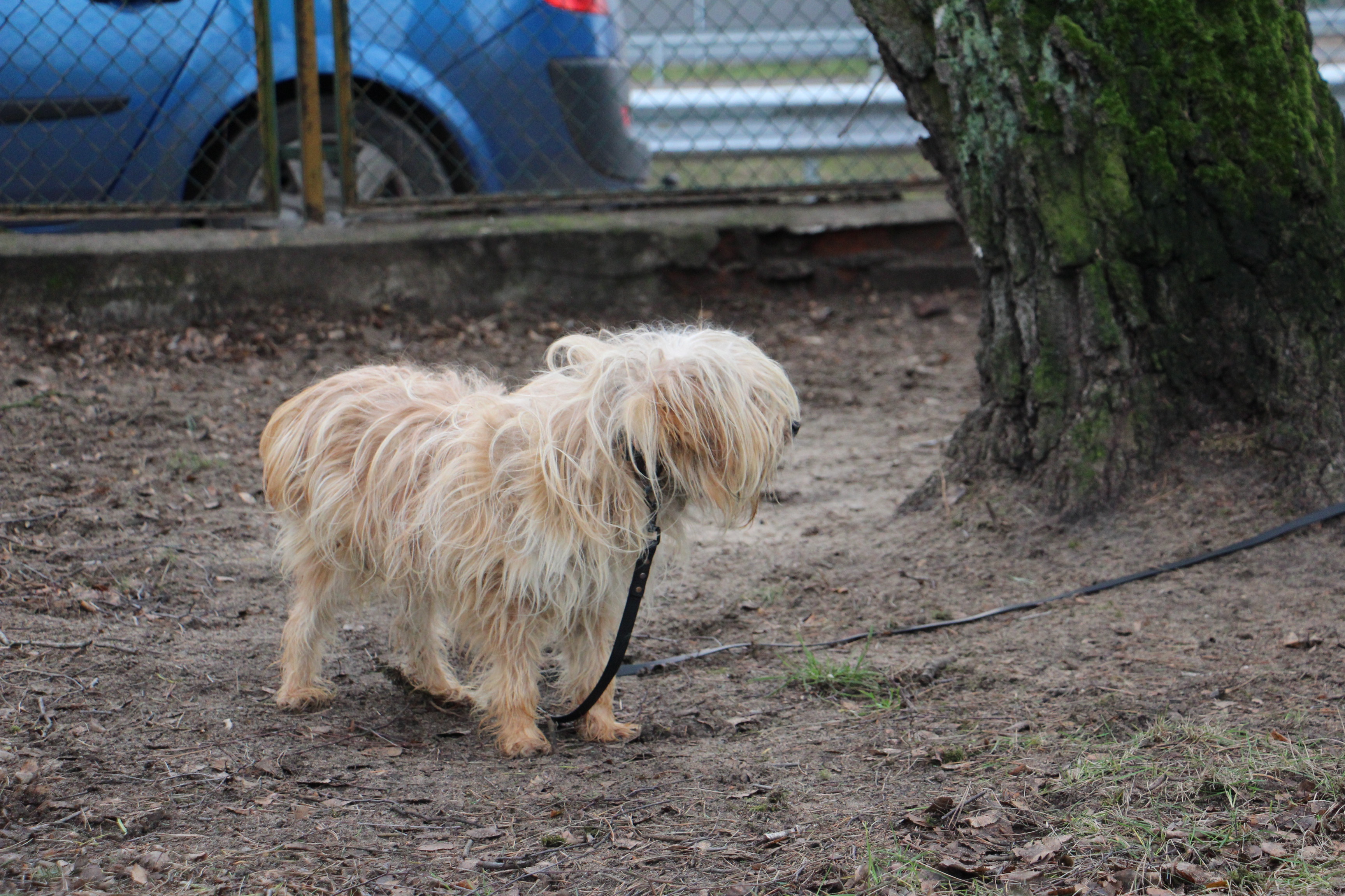 PONGO Pies przywieziony 11 grudnia 2023 r. z Budziszewka, gmina Rogoźno. Pongo bardzo szybko zaakceptował smycz. Ma ok. 3 lat. Waży 5,6 kg. Lubi przytulać się do opiekuna. Jest łagodny wobec ludzi. W nowym roku będzie musiał skorzystać z usług psiego fryzjera, ale wtedy musi już zamieszkać w ciepłym domku.